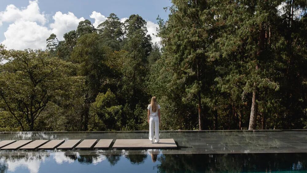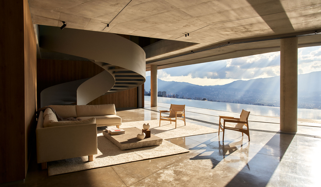 这是 J Balvin 位于麦德林山区的宁静度假胜地,坐落在一座郁郁葱葱的山顶上,在家里便可鸟瞰下方无边无际的森林。