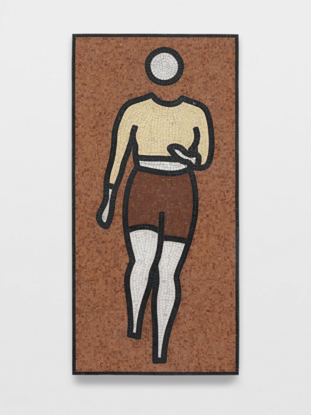 Julian Opie, Dance 2 figure 3 step 1., 2022, Mosaic tiles121 x 59 x 5 cm, 47 5/8 x 23 1/4 x 2 in © Julian Opie. Courtesy Lisson Gallery