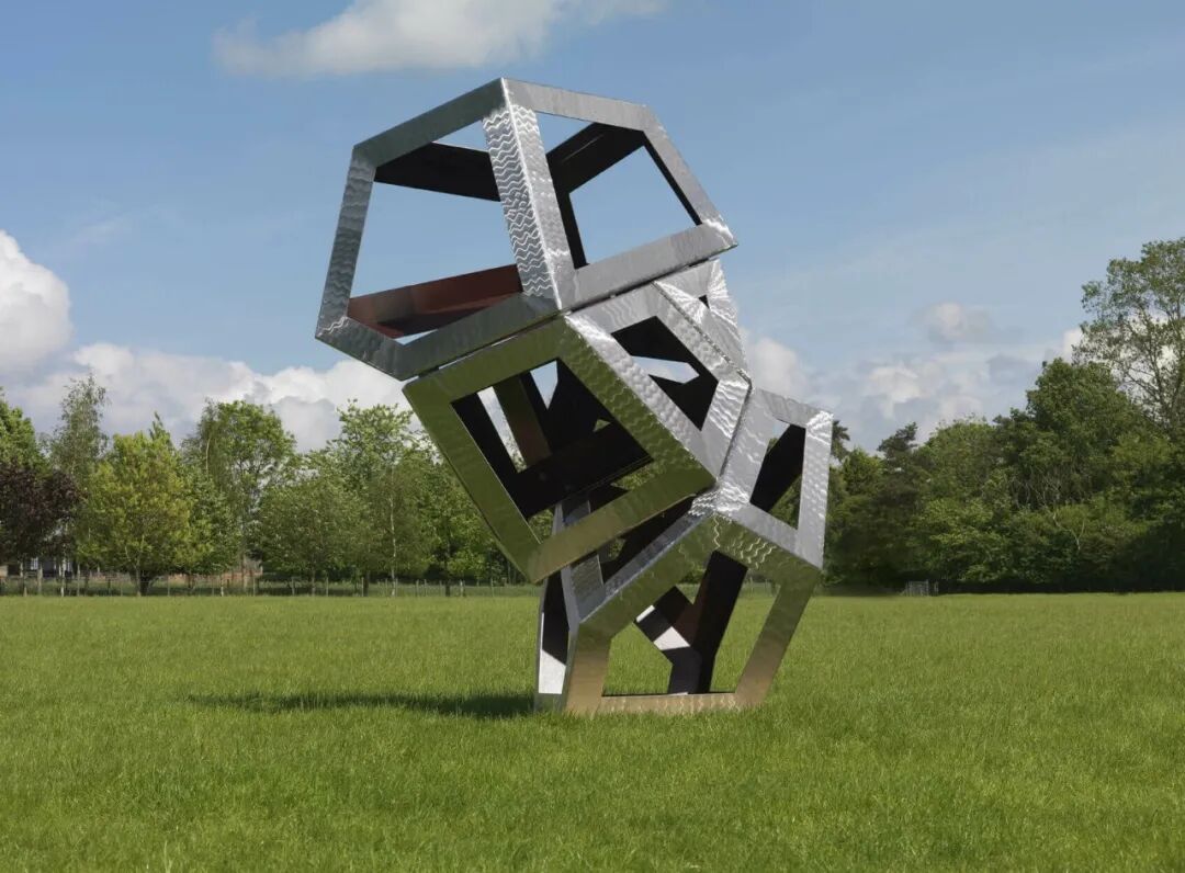 Richard Deacon, At Sea #1, 2022, Stainless steel, 58 x 156 x 58 cm, 22 7/8 x 61 3/8 x 22 7/8 in © Richard Deacon. Courtesy Lisson Gallery. Photography by Ken Adlard