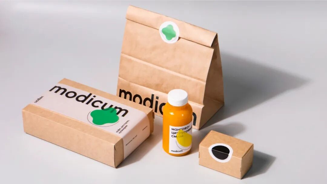 一家小餐馆项目,视觉系统表达了朴素概念——一盘健康食品。一个带有产品抽象图像的平板容器。