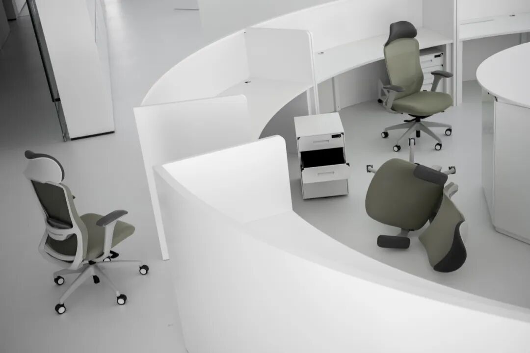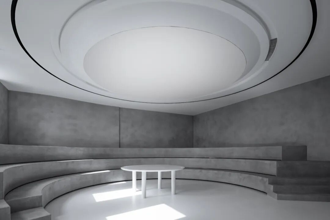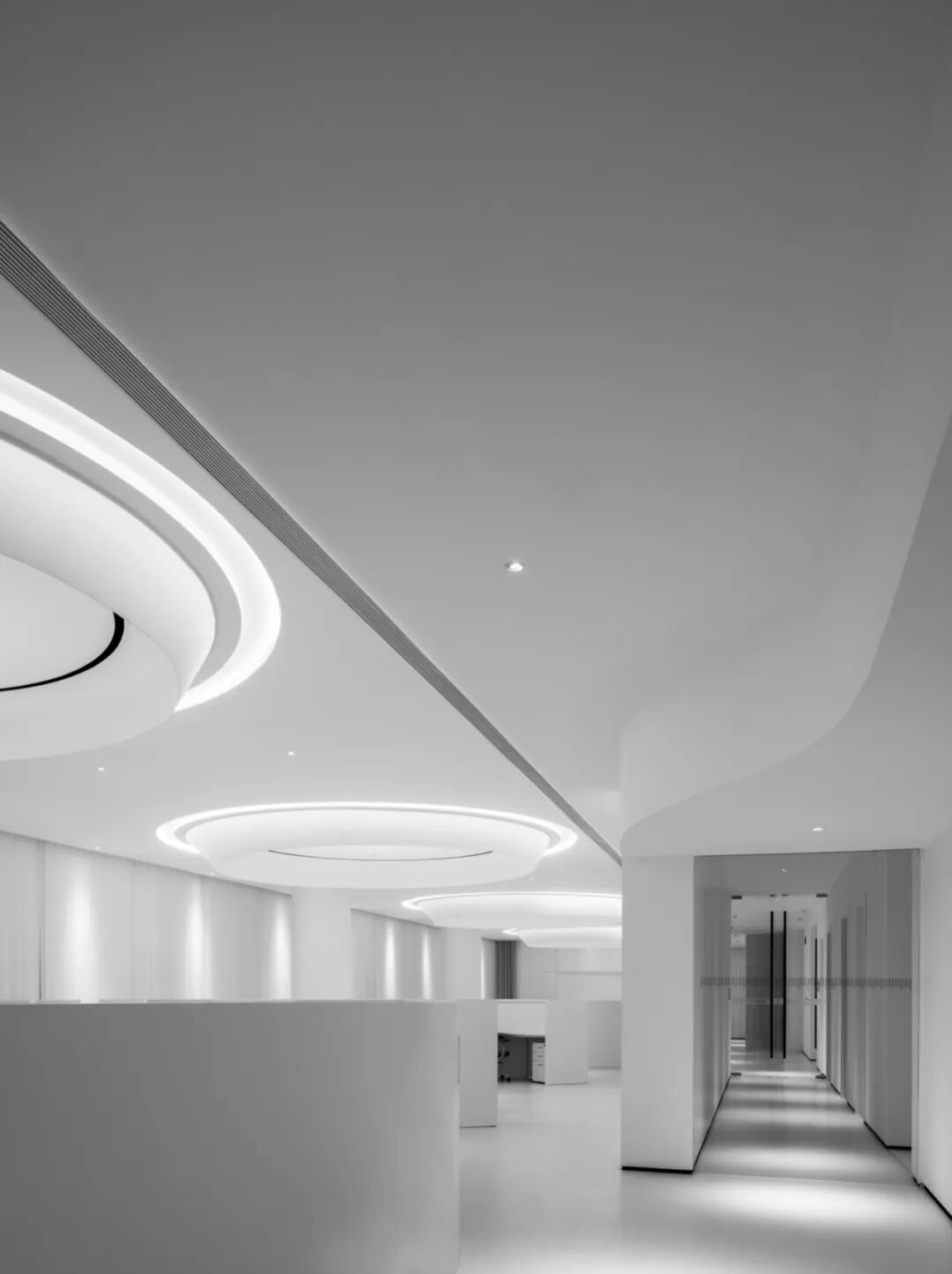 海鸥手表是中国第一只机械表的诞生地。在这里,集见设计的创始人兼设计总监李新喆将“圆形表盘”作为探索办公空间的开始,用极简、灰白表达时间,让人感觉仿佛置身于精密表盘内部。
