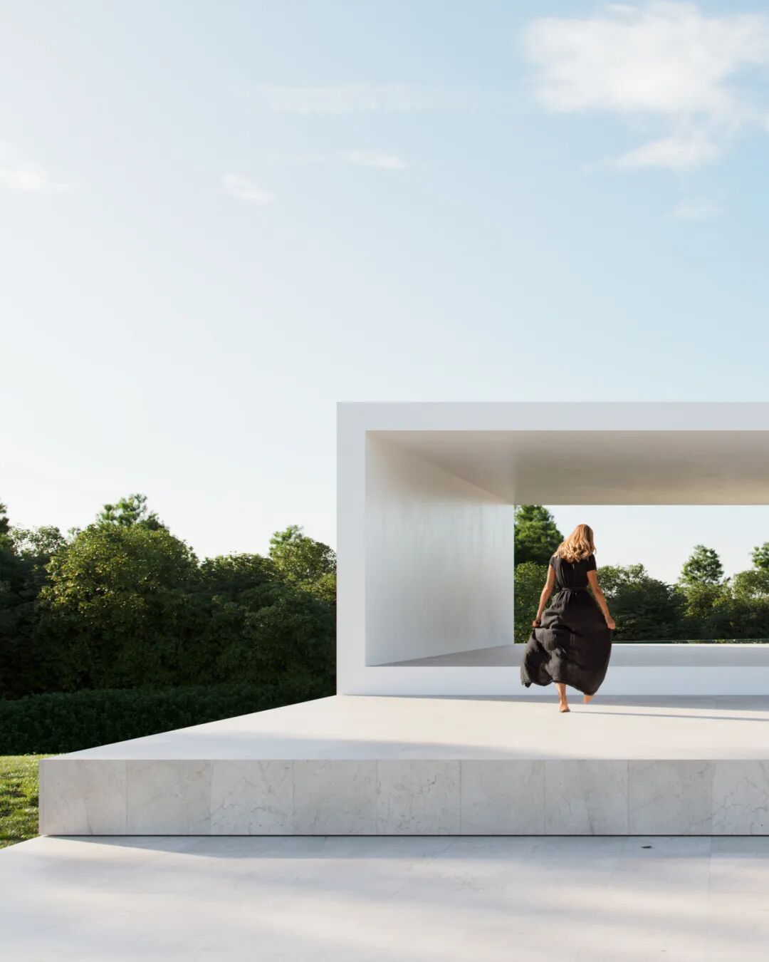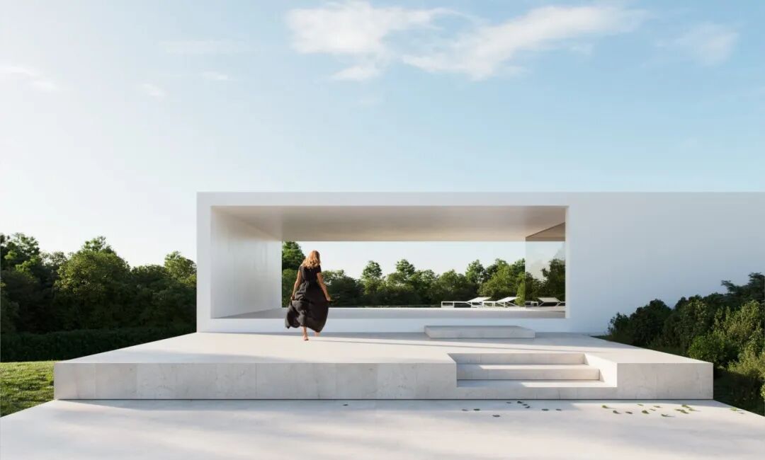 The expressive nature of this three-story house is designed in a continuous movement that suggests, between its different rooms, a walkway from where to explore the landscape that expands in front of it.