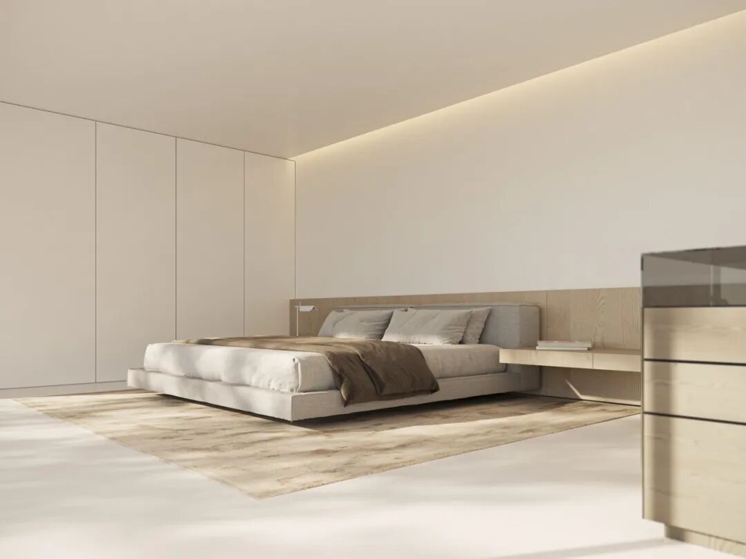 上层通向一个大阳台:中间部分的屋顶,其范围向两个方向扩展;到了外面,是朝向游泳池的,再到地块内部,直到上层的界限。