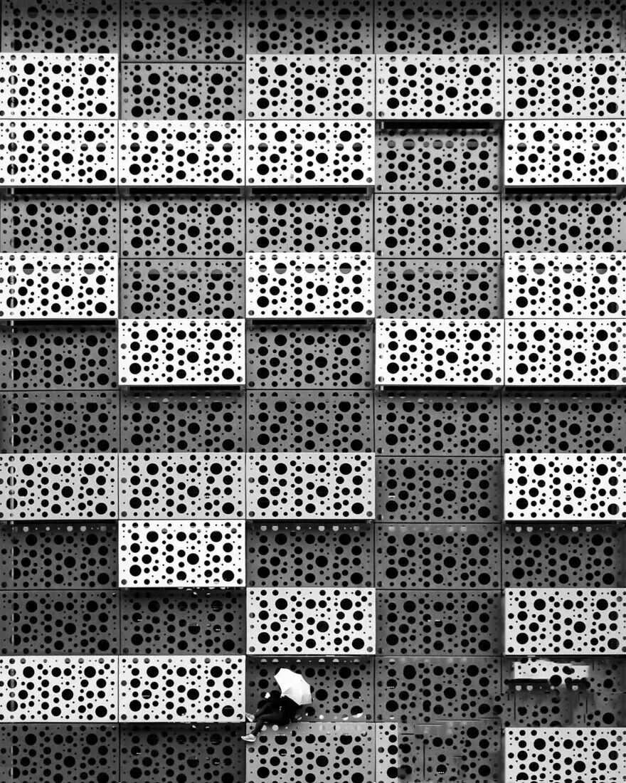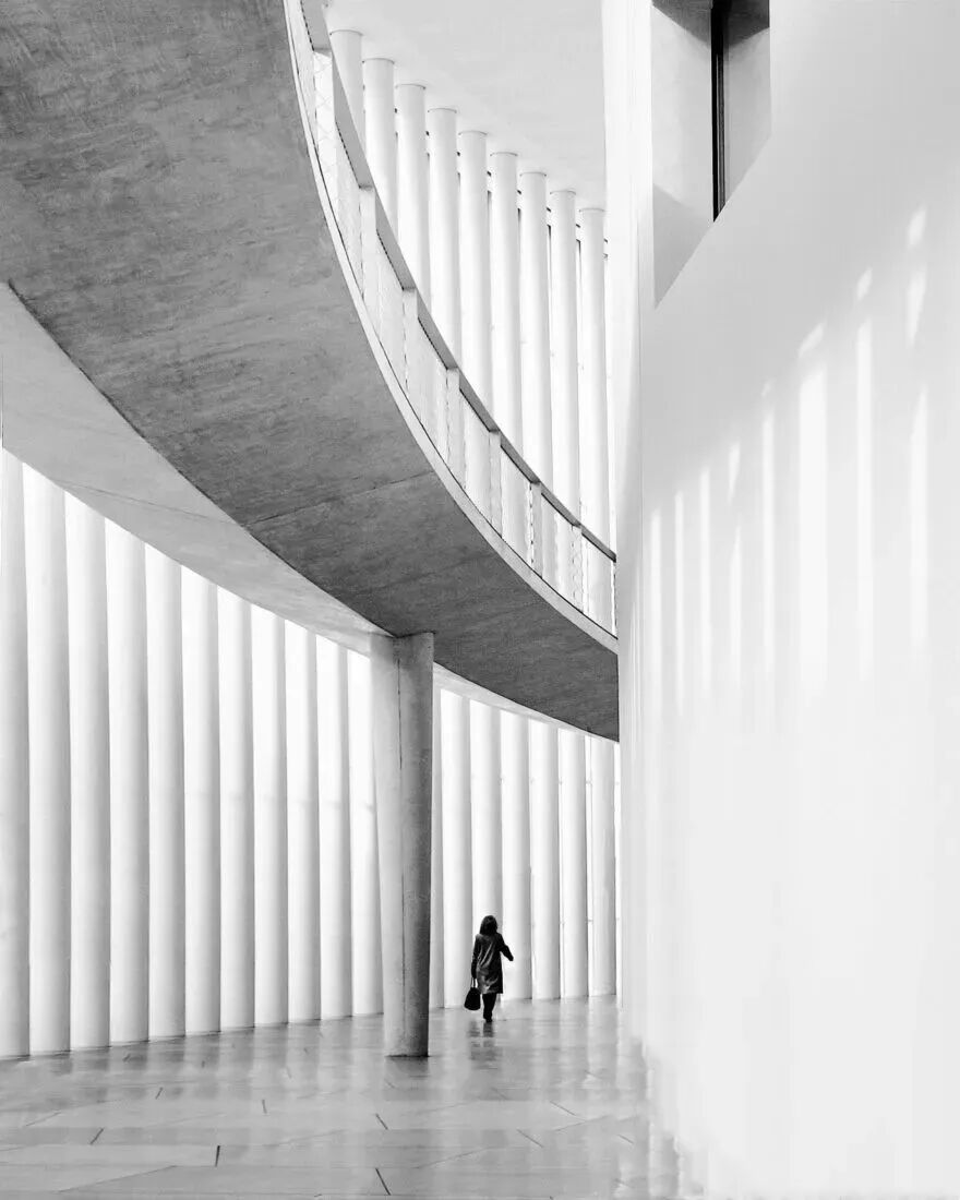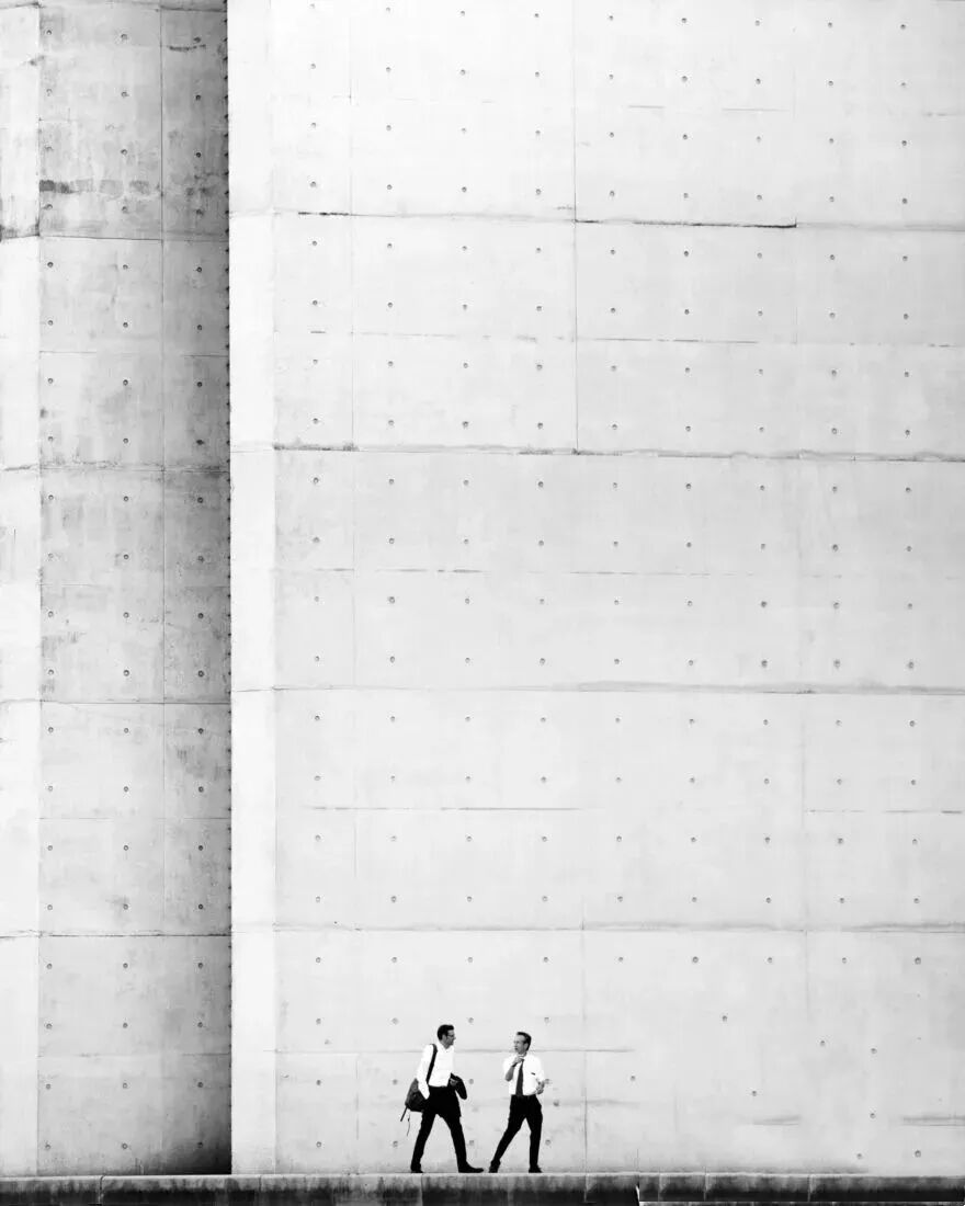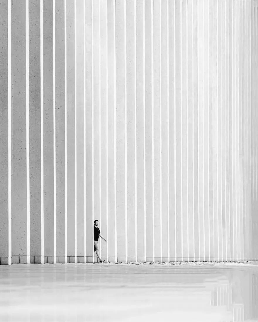 我的系列“城市建筑”结合了建筑和小人物。我总是试图展示一个孤独的人,因为这强调了极简主义对我的影响。