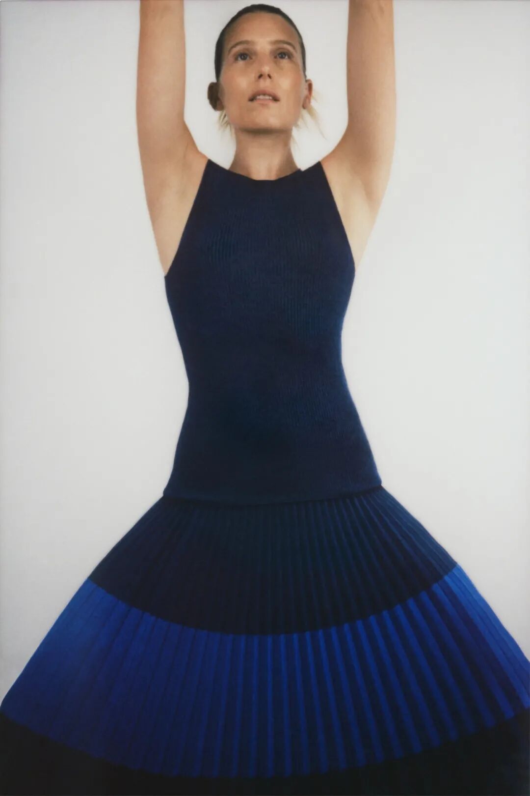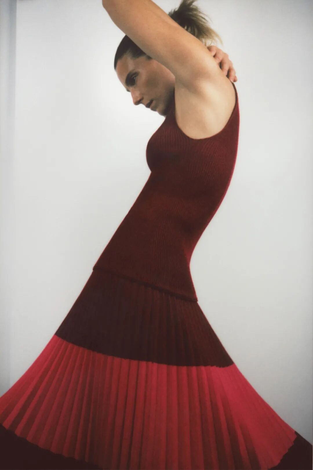 2022度假系列,Nellie Partow 在男装上找到了灵感,她的标志性针织衫采用了新的曲线型剪裁,例如红宝石色的拼接连体衣与充满现代风格的方领LBD。Partow 说,她看到了20世纪20年代,当时女性从一战后西班牙流感的另一个黑暗时期中走出来,带着对生活的新欲望和与之相匹配的更现代、更大胆的外表出现,让她看到了生命的力量与希望。