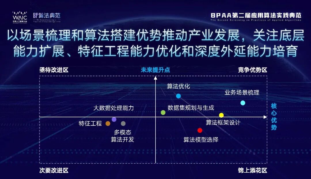 非常荣幸在BPAA第二届应用算法实践典范总决赛暨算法峰会的现场进行分享,今天也是世界人工智能大会的第一天。无论是普陀区委常委、副区长姚汝林介绍的普陀发展中算法所在的位置,还是普陀区科学技术委员会李文波主任对普陀“算法十条”的详细介绍,我们都可以看到普陀在率先打造中国算法产业发展高地。这次我们借着这样一个机会,开展了基于百支优秀算法团队的专项调研,全球一百多支优秀算法团队参与,提供了很多宝贵的观察和建议。