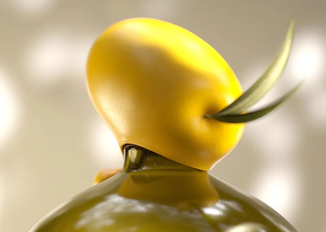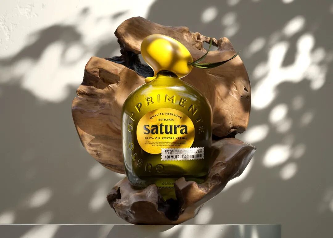 一颗金黄透亮的橄榄作为异形瓶盖设计
