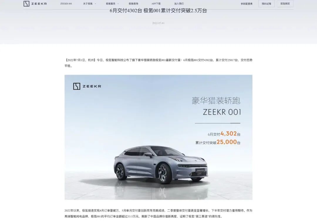当然,如果免费的话,这对于极氪来说也是一个不小的成本,毕竟2022年7月1日,极氪智能科技就公布了极氪001已累计交付突破2.5万台的消息。