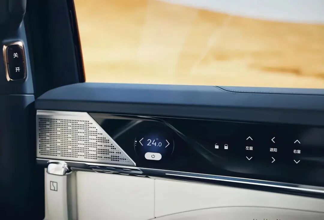 最惊艳的还是双侧滑移车门上的Smart Bar,音响与屏幕搭配嵌在车窗下方,方便观察和操作。动态的光效和光晕在无形中起到了生动的提示和引导作用,并且中文提示的按键也在网上引发了大批网友们的称赞。
