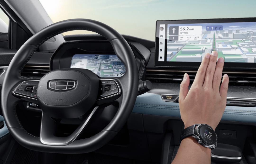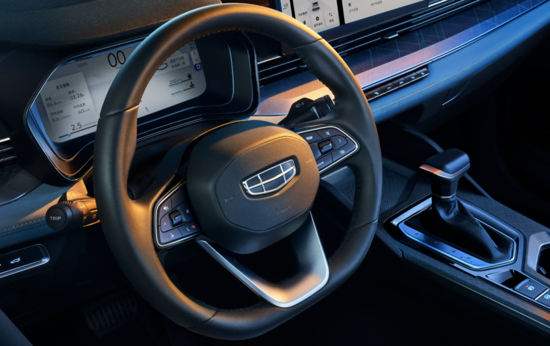 智能生态系统背后是吉利E02高性能数字座舱平台,采用12nm先进制程高性能芯片,拥有八核CPU可以多任务高效并行,依托车内10.25英寸液晶仪表以及12.3英寸高清悬浮中控大屏,4G联网和车载WIFI、各类通讯、娱乐、出行及生活等智能服务全都有了,在交互方式上你既可以用三指进行飞屏,双屏也可以在一起联动,当然还可以通过语音交互。
