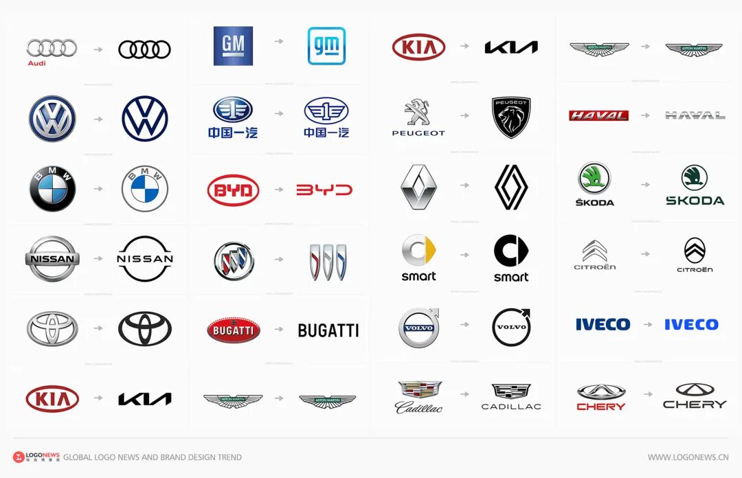 近年来,扁平化风潮已经占据汽车、航空、互联网等各个领域,其中汽车行业尤为壮观。随之汽车电气化的加速发展,各大汽车厂商不约而同地升级迭代其形象LOGO,去除高光立体的3D效果,从繁杂厚重的拟物化图形转为轻盈利索的平面化符号。