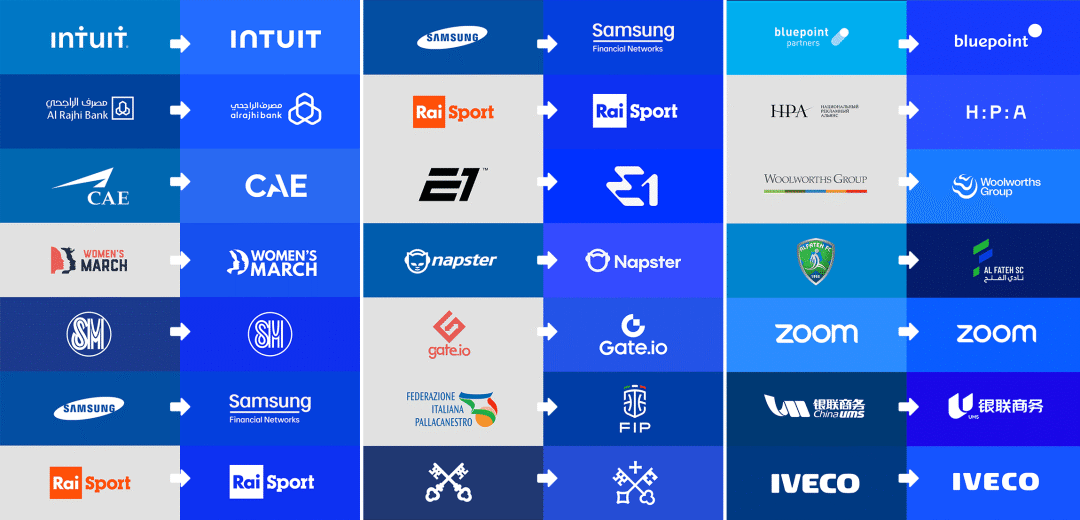 在众多品牌视觉升级的案例中,蓝色可以说是品牌色彩系统中最受欢迎的颜色。但近年来我们发现了一个较为明显的趋势,大家都喜欢比较鲜艳的蓝色。放一张图感受一下。