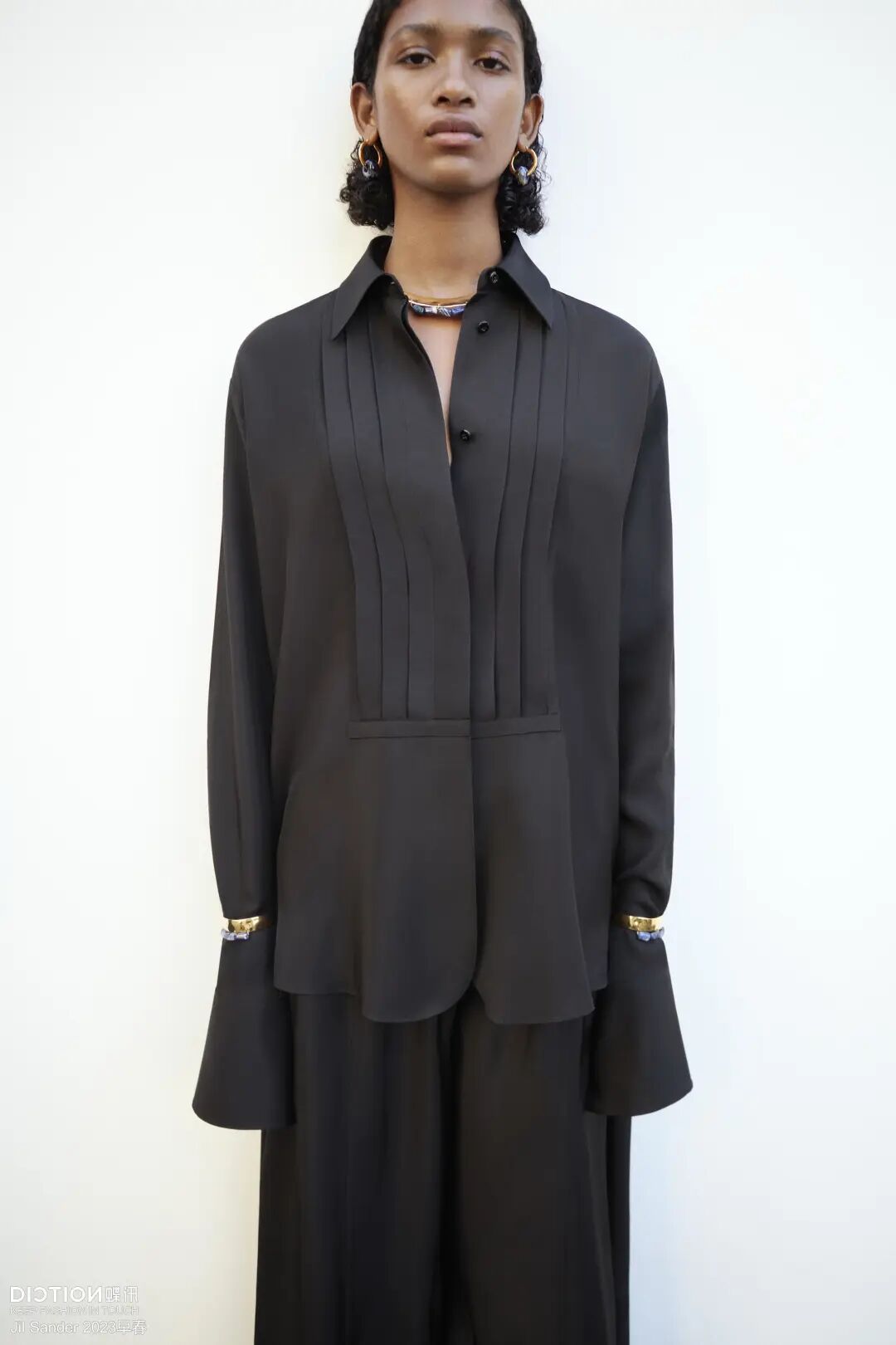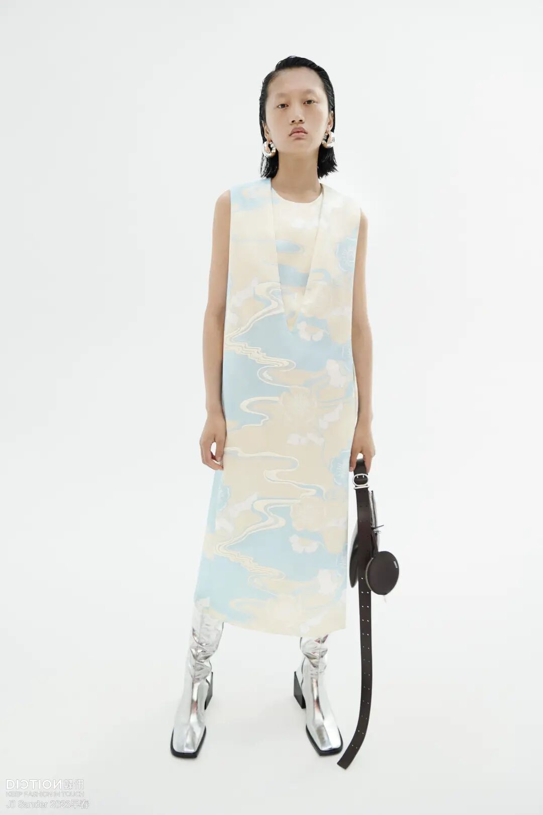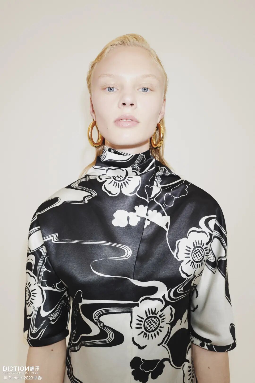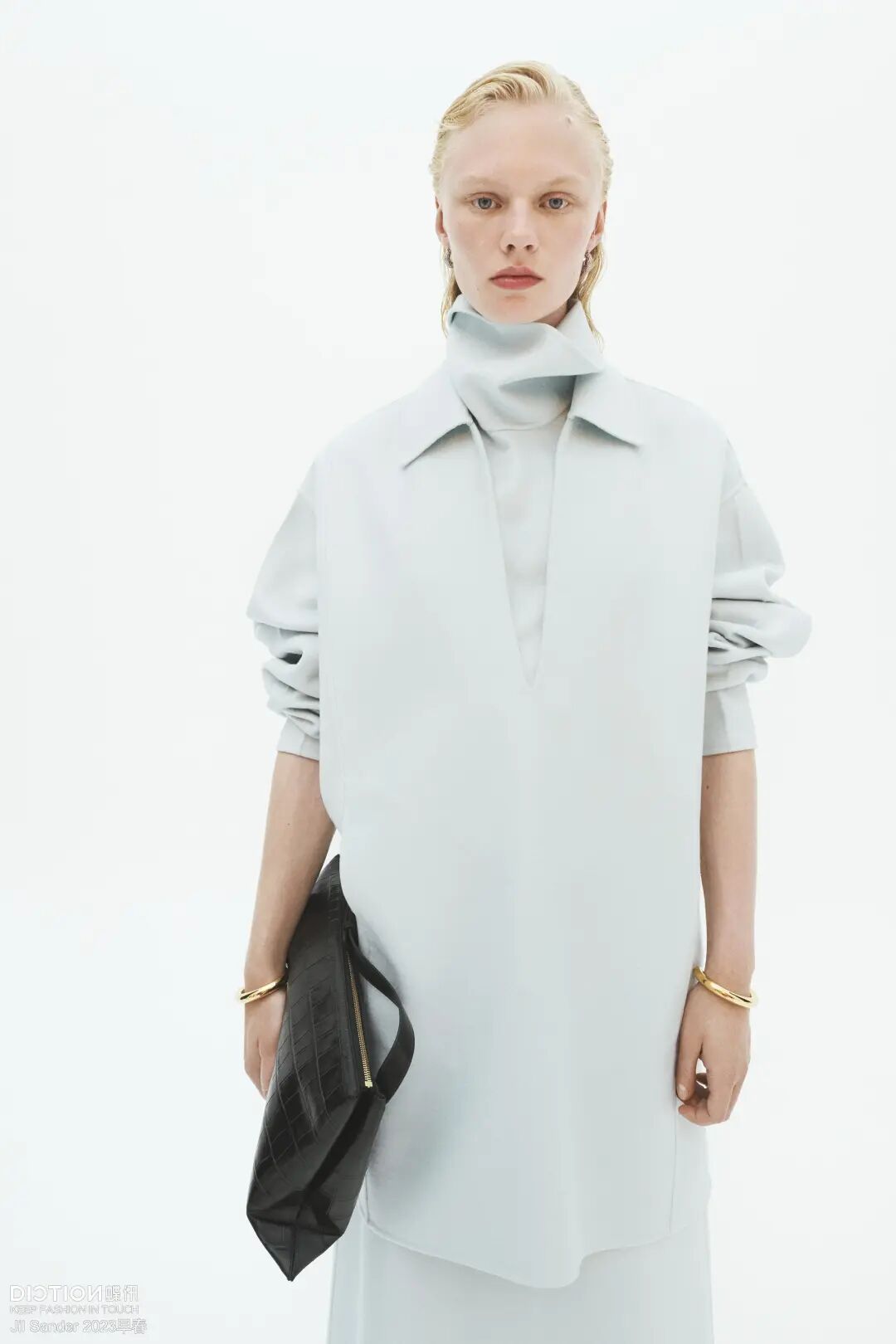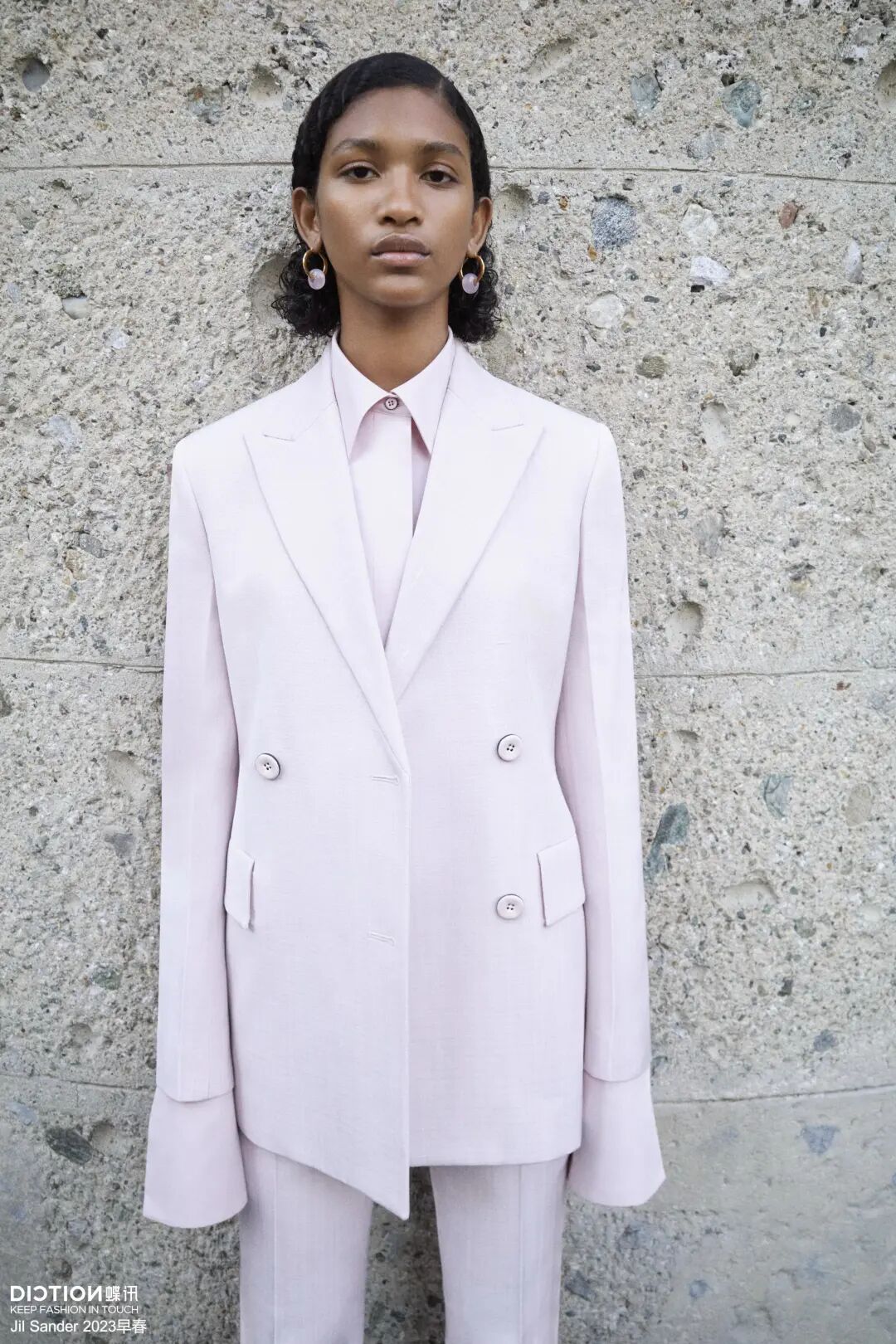 JIL SANDER 2023早春女装系列这些服饰拥有柔性裁剪,线条流畅唯美,可雕塑型体,充满异域风情和空间美感,是彰显个性的工具,给人延绵不断的视觉享受。套装的理念是上装完美呈现,紧致且富有棱角。下装美感流畅且形态宽盈。长度多样。裙子展现了高度柔美的形式。