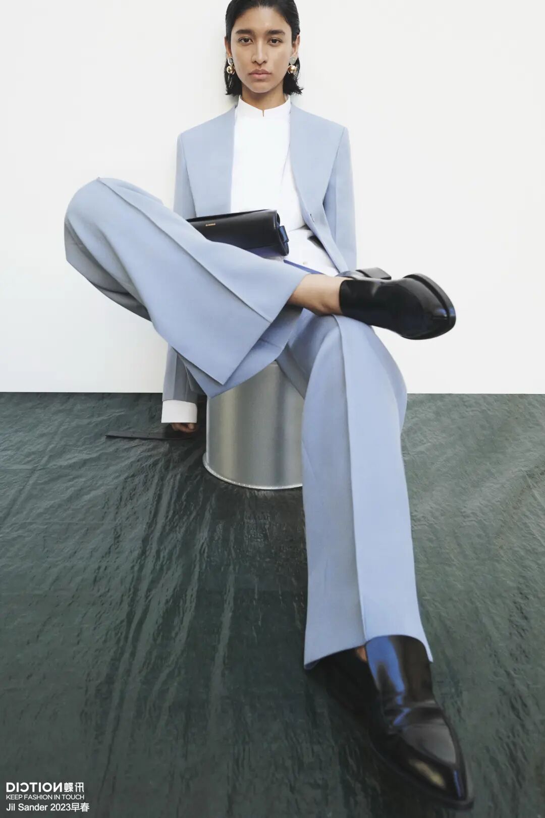 蓝色系风格百搭的轻松和轻盈的感觉,2023早春系列的冷色调也在色彩中展现了极简主义风格。