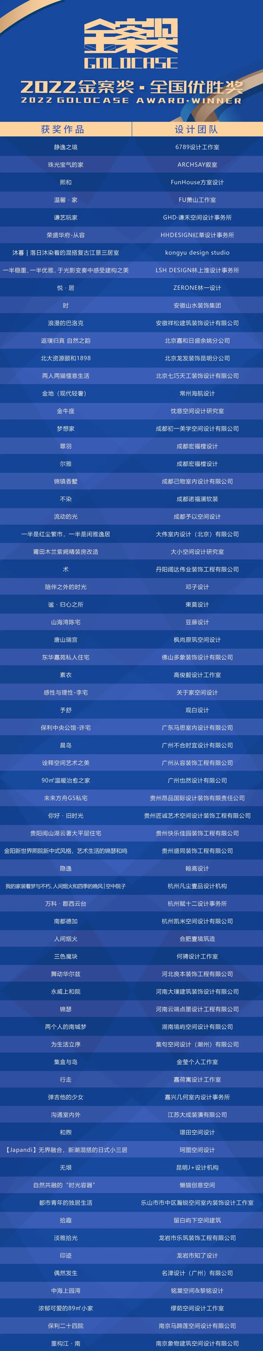 再次祝贺以上荣获“2022金案奖 · 全国优胜奖”的全案设计团队!