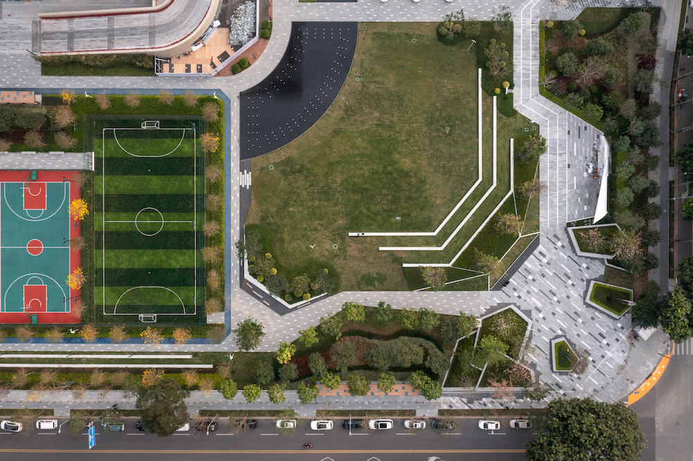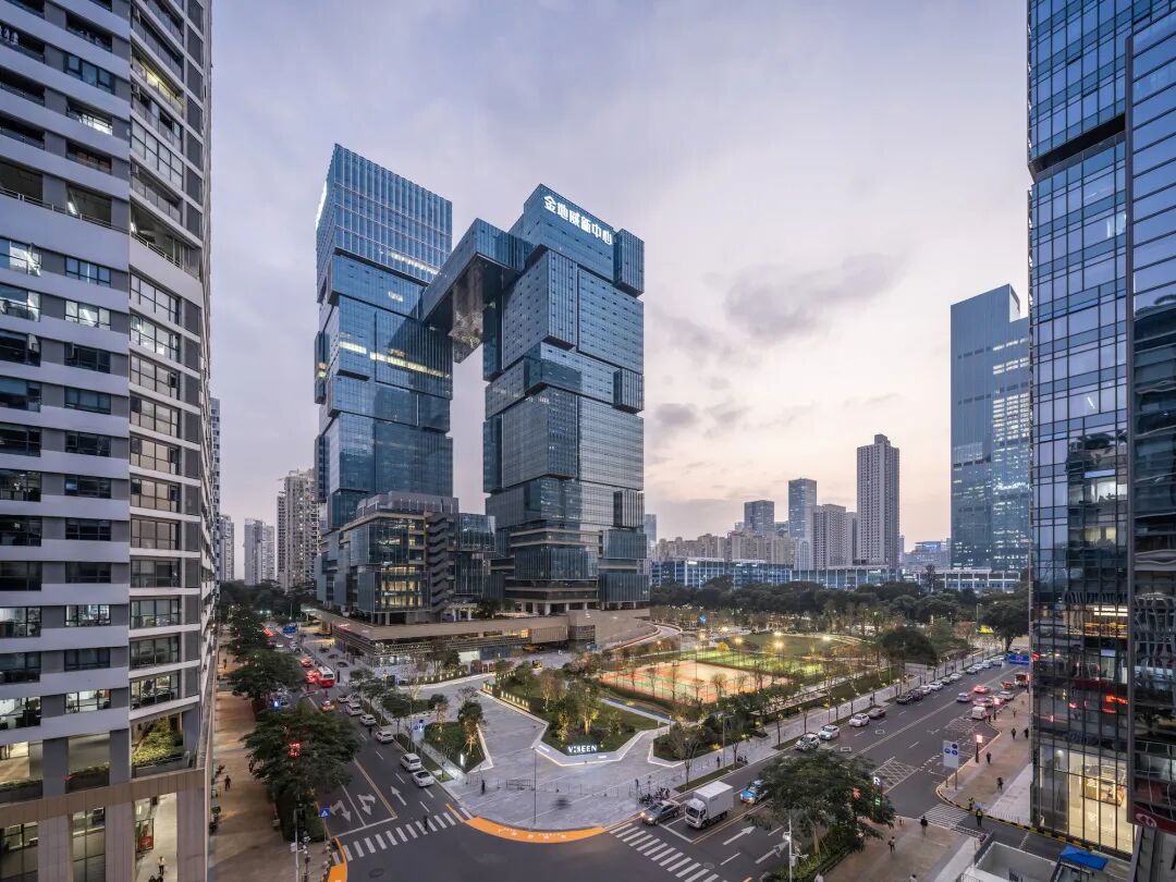 CRTKL设计的金地威新中心打造了一系列灵活的办公空间和多功能设施,满足了不同客户的需求。该项目在高密度房地产开发和城市公共空间之间实现了充分的平衡。与传统的办公大楼不同,金地威新中心突破了大型建筑的惯常思路,利用小型立面设计反映创新的无限可能;此外,项目拥有占地近60%的绿色运动公园和立体多维迷你花园,其作为外部公共空间,是科技区中心地带至关重要的、可供休憩放松的自然绿色空间;高效的建筑系统为业主、住户和客人提供了更加舒适的工作空间。金地威新中心以28万㎡高端商办的超级势能,成为南山科技园品质办公与商业配套的升级之作,深圳高新产业聚集的新地标,也是中国“南硅谷”的新范本。