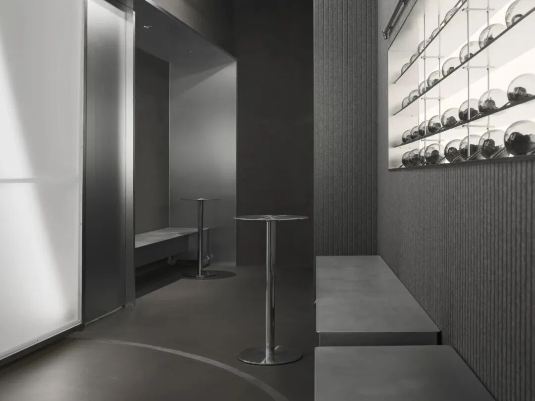 不锈钢+毛毡成为空间主要的材料,在声学环境和人体舒适度上都能真正达到使人愿意停留、享受咖啡和社交。©言隅建筑空间摄影