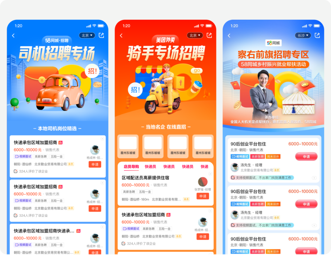 “疫情时代”之下,面对各地区招聘市场供需结构不平衡,58同城招聘发挥平台责任,积极助力民生工程,做好稳就业工作,打造了神奇日、超职季、行业专场、职位专场等综合性线上招聘活动。面对密集的就业专场活动,为了提升整体统一的品牌感以及设计产出效率,58招聘设计团队以打造独特性的标准化设计作为我们的目标,我们通过以下设计技巧高效直观地解决了设计共识、设计统一性和用户认知。