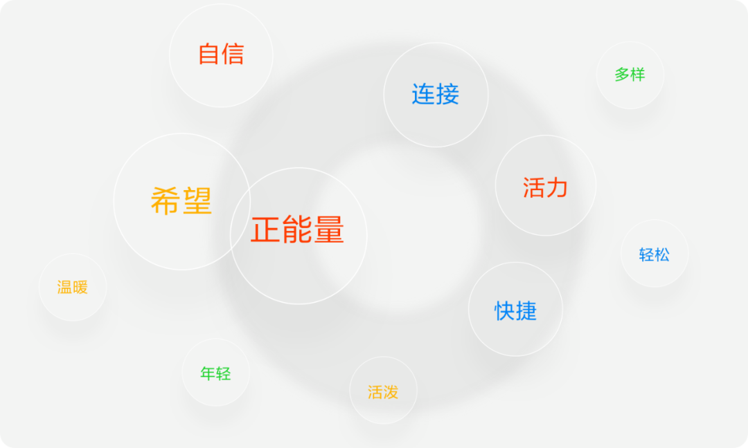 从而得到我们的设计关键词:正能量、自信、希望、温暖、年轻、活力、连接、多样、快捷、轻松、活泼、有趣