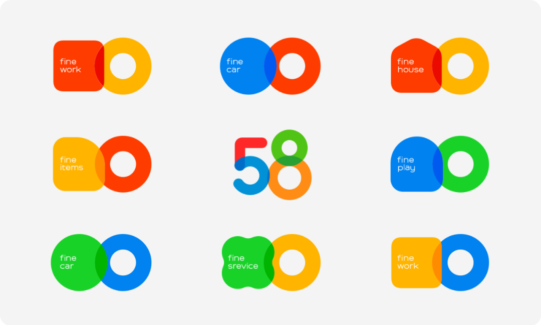 符号的独特性总会形成快速的口碑传播,我们迭代了品牌符号,此次超职季运用的是58新推出的一套专属符号,符号通过58LOGO图形提取,意在强化58各业务线之间的品牌关联度,打造58整体品牌感。