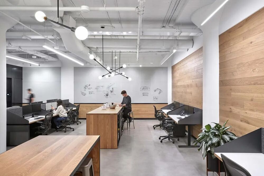 Tags:制造,美国总部、木材、冷轧钢和毛毡、简约灰调工业风、木地板墙面装饰、灵活多元