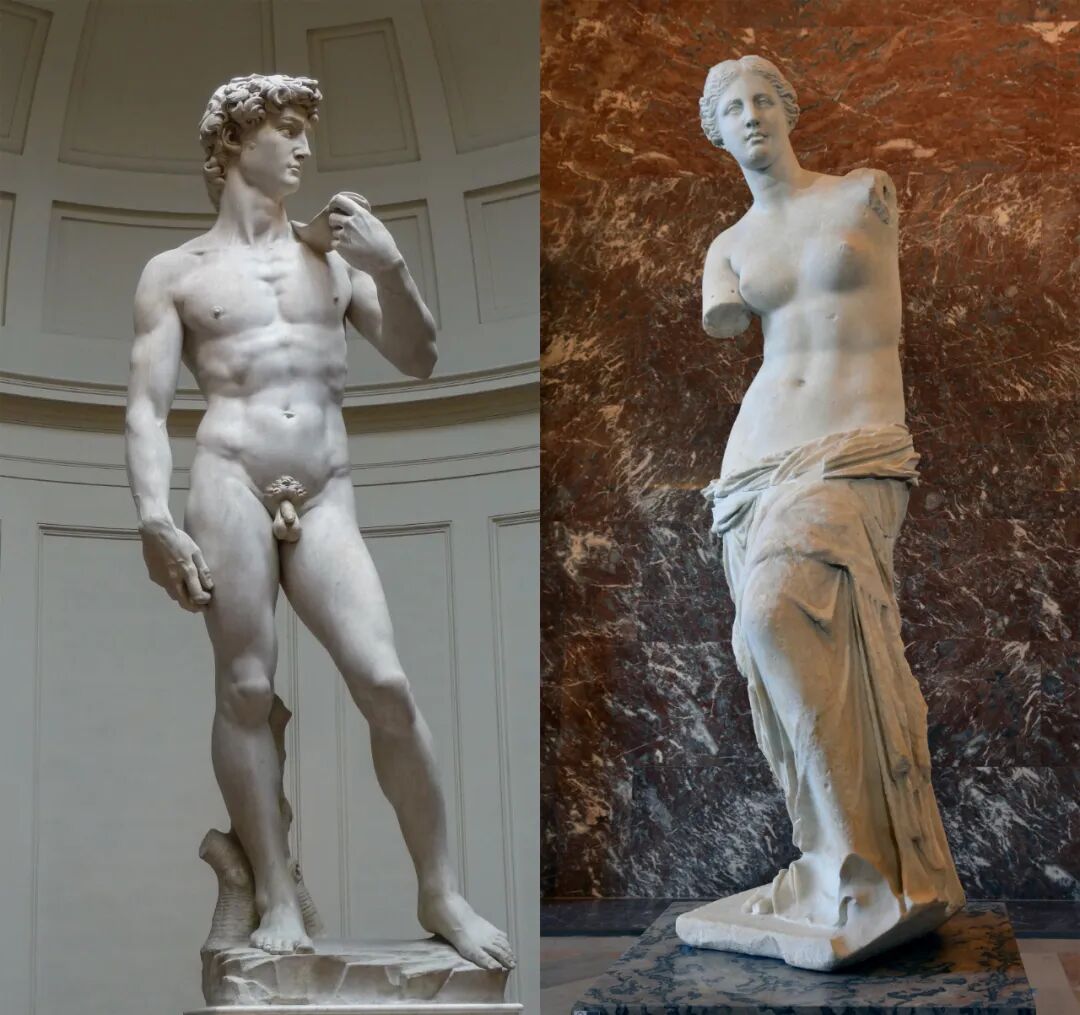 左:米氏《大卫》;右:安提俄克《米洛的维纳斯》,收藏于法国卢浮宫