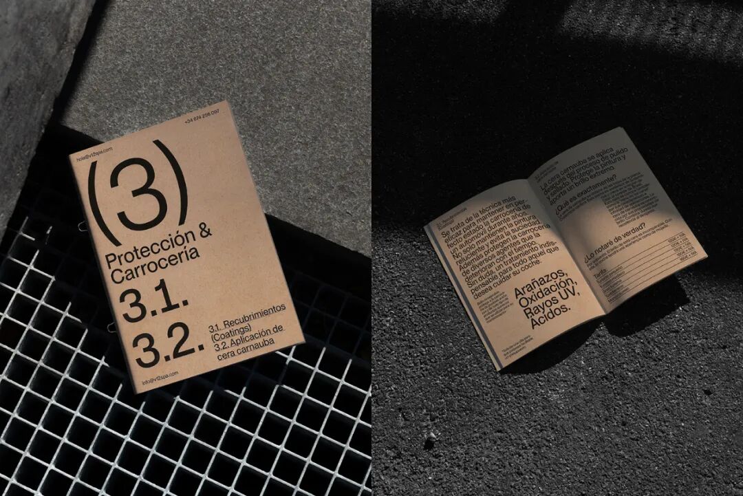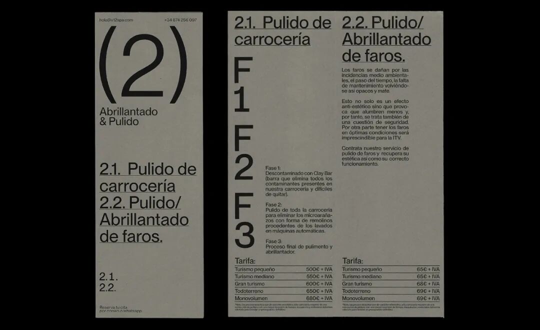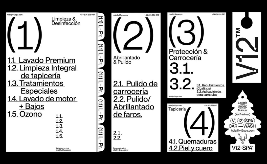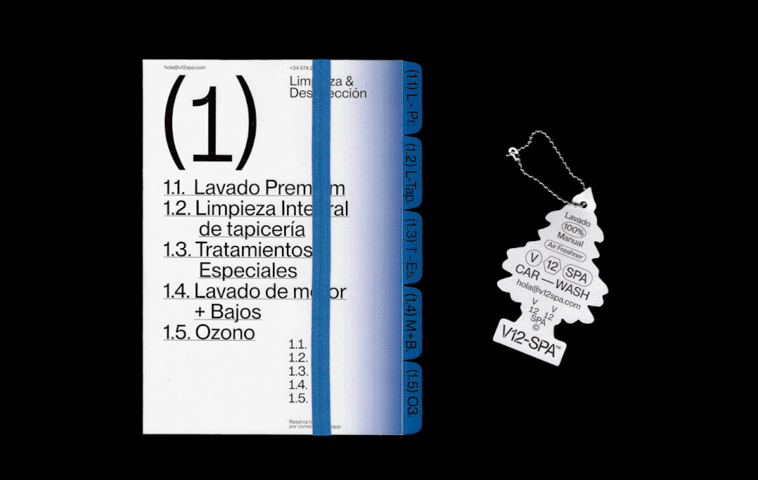 Spanish creative studio @viudastudio created a brand brochure for premium car wash brand V12-SPA. The studio's solution to the brand's wide range of services is presented in a booklet containing a variety of formats and bindings.