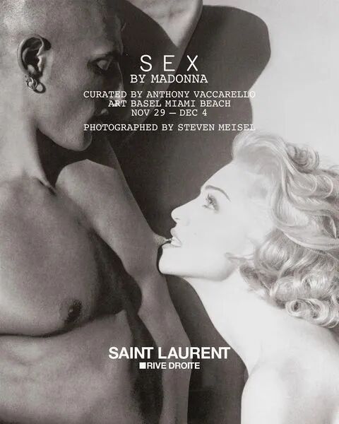 Saint Laurent 创意总监 Anthony Vaccarello 携手传奇缪斯 Madonna,于迈阿密海滩举办的巴塞尔艺术展策划了一个特别意义的展览,纪念并庆祝由 Callaway 印行的 Madonna 经典写真集《Sex》再版。