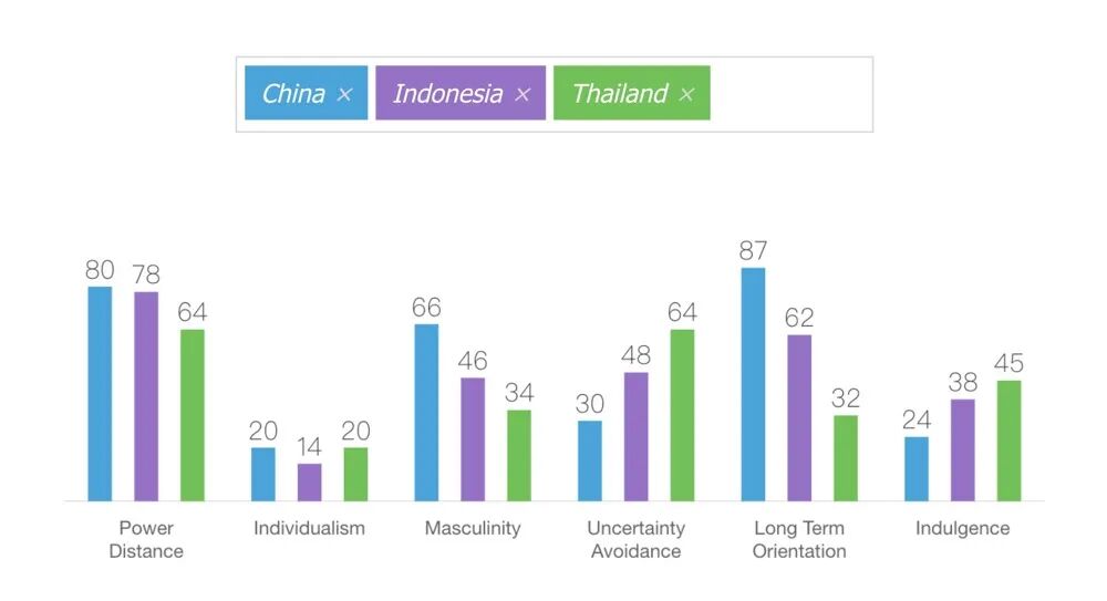 如果把中国、印尼和泰国拿出来对比,可以发现不少共性和差异: