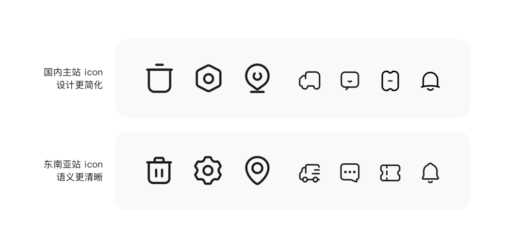 而东南亚的用户对于网购的使用没有国内用户那么频繁,很多习惯和认知尚未建立起来,所以京东为他们设计了更加信息清晰的图标。