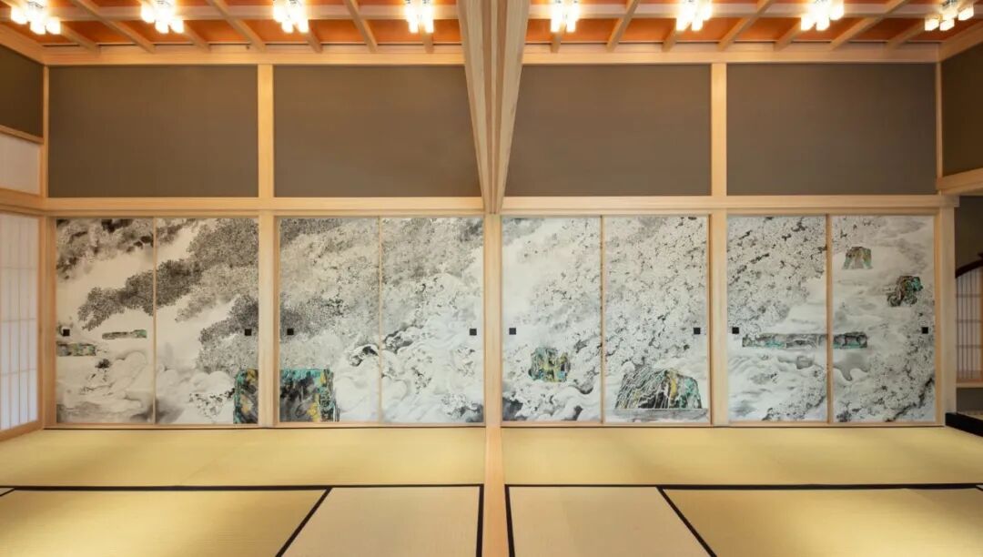 一侧推拉门上的画作来自于现代日本艺术家Asakura Takafumi,他以京都三井酒店的花园以及它在四个季节中的变化为灵感,创作了令人惊叹的图案。用水墨画来表现阴阳五行、二十四节气、六十四卦以及暗示四个季节的图案。
