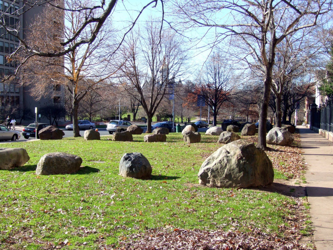 有一处名为的“石之广场(Stone Field)”的公共空间,建成于1977年,位于美国康涅狄格州哈特福德镇。设计师是著名的极简主义艺术家——卡尔·安德烈。据说彼得·沃克的唐纳喷泉,就是受到了这件作品的启发。
