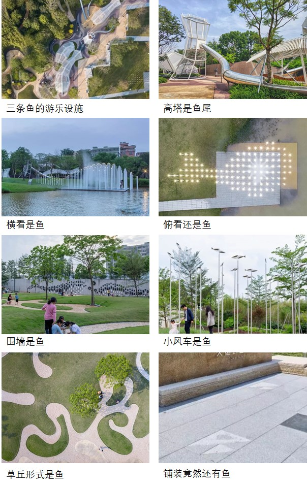 没有任何一条景观理论会教我们把设计搞得好玩点、把一个元素变着花样儿地复制粘贴。事实上,有些“鱼”完全是可有可无的,丝毫不影响整体的空间结构,但正是由于这些鱼的存在,园子才有了生命。
