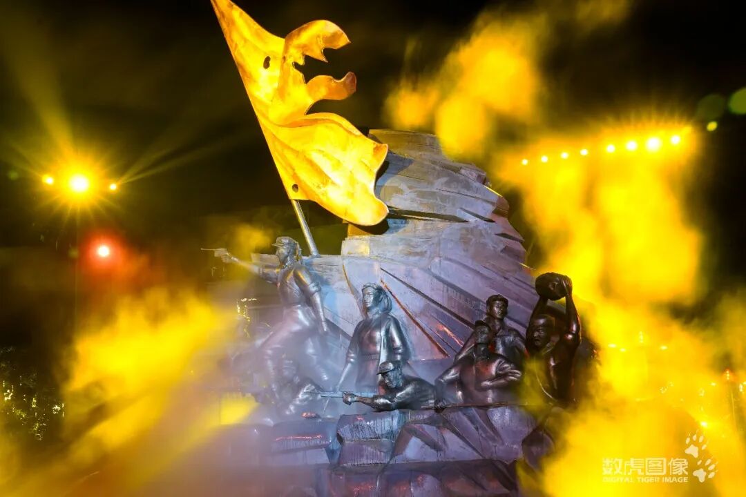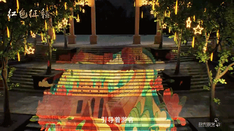 在颜色选择上,整个夜游以中国红、曙光黄为主色调,凸显红色革命精神,以黎明蓝、坚韧紫、钢铁银为辅助色,寓意革命胜利之前的曙光,革命英雄们如钢铁般坚韧的意志。