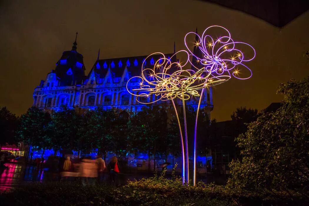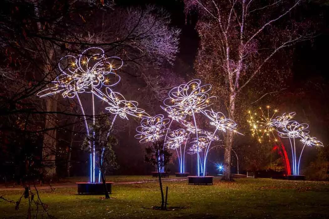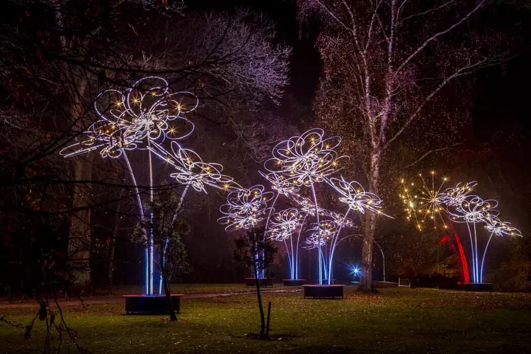 花瓣从花朵的发光中心展开,饰以灯光