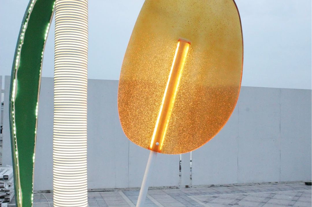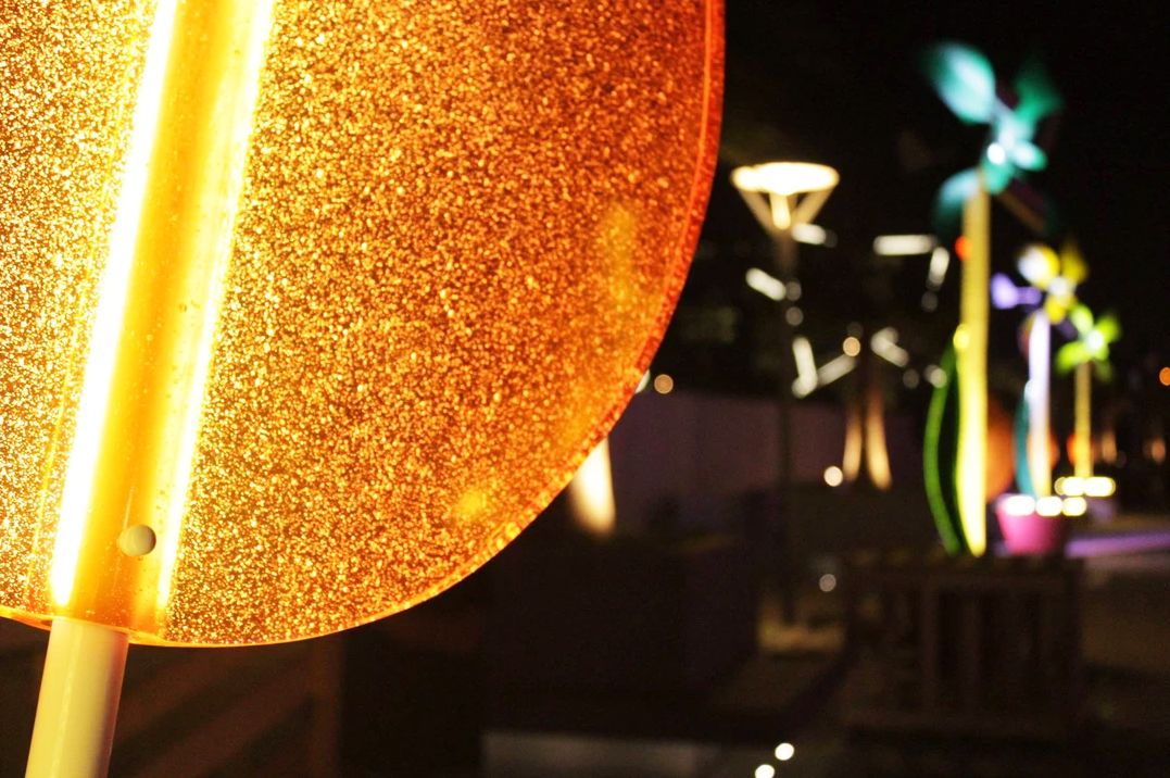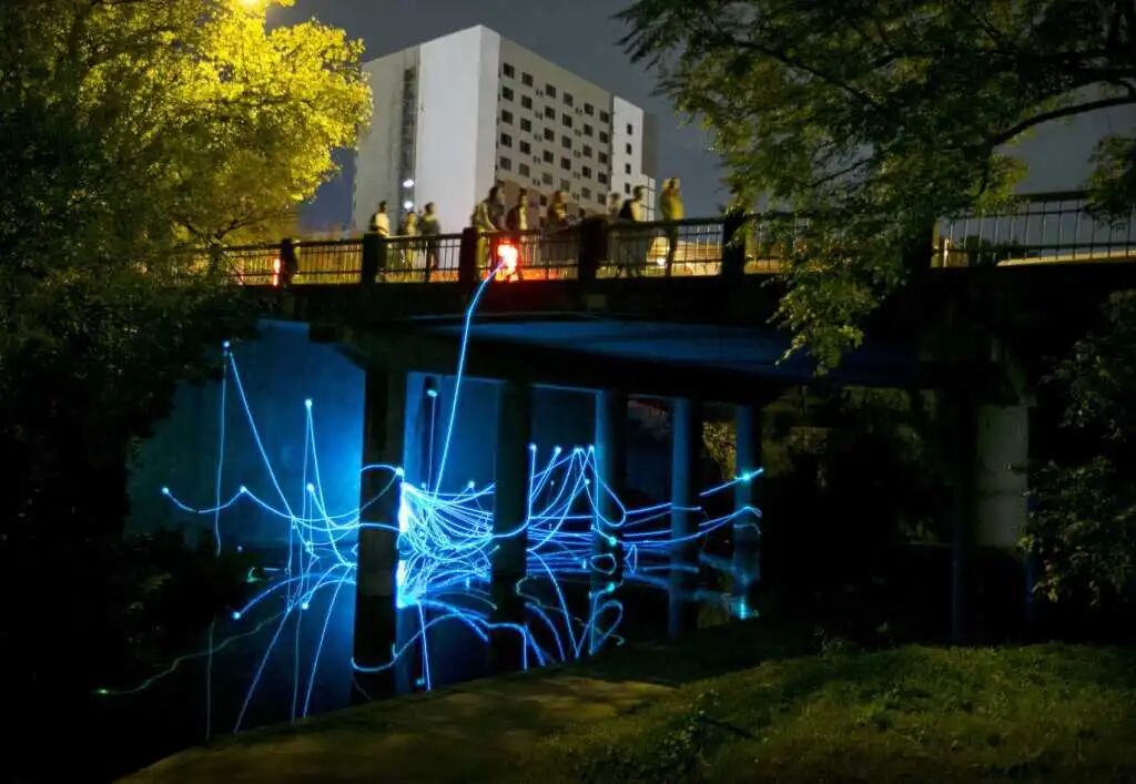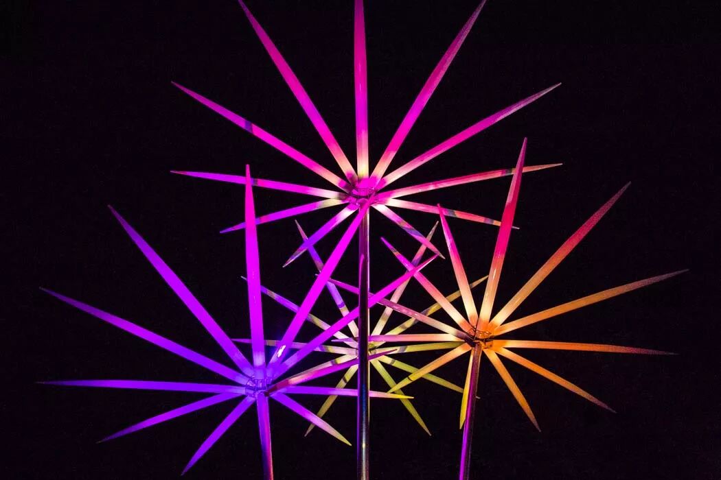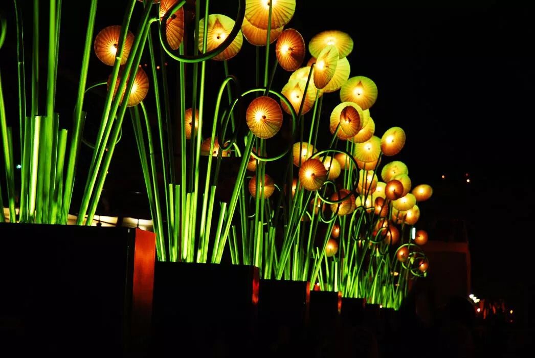 这处户外景观灯,共使用了150根玻璃纤维
