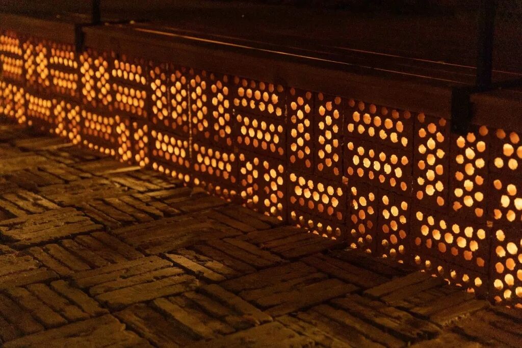从蜂窝砖透出的灯光