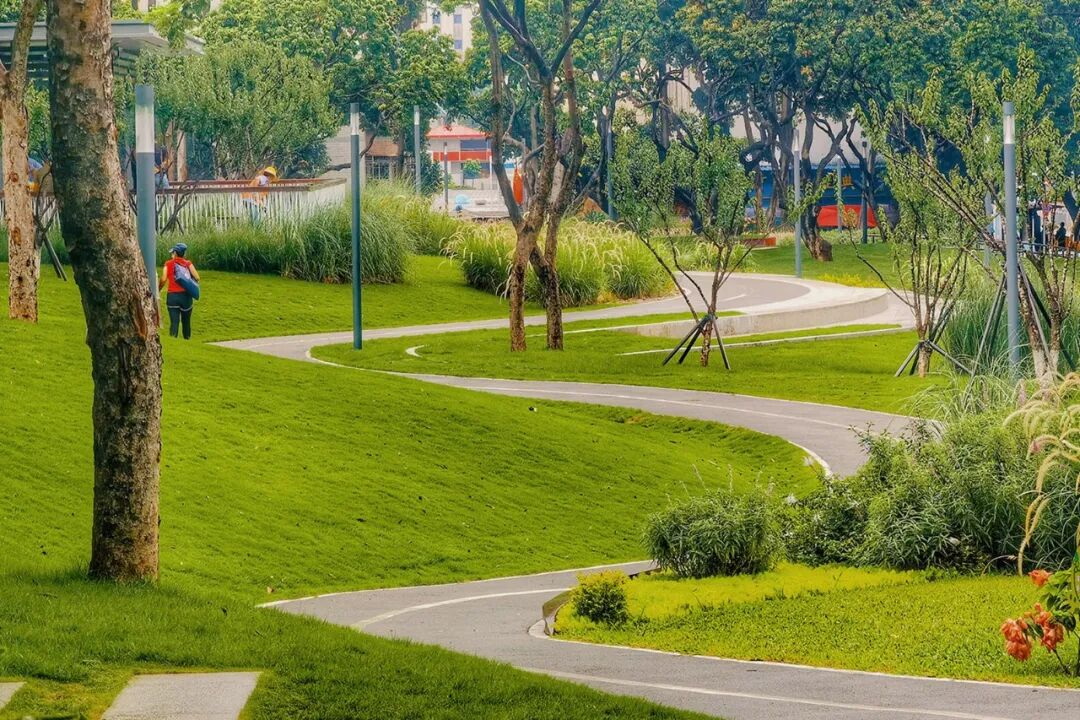 地形景观在设计中应用很广,通过堆填一定高度的微地形,营造出丰富的软质视觉层次和创造不同的活动空间。