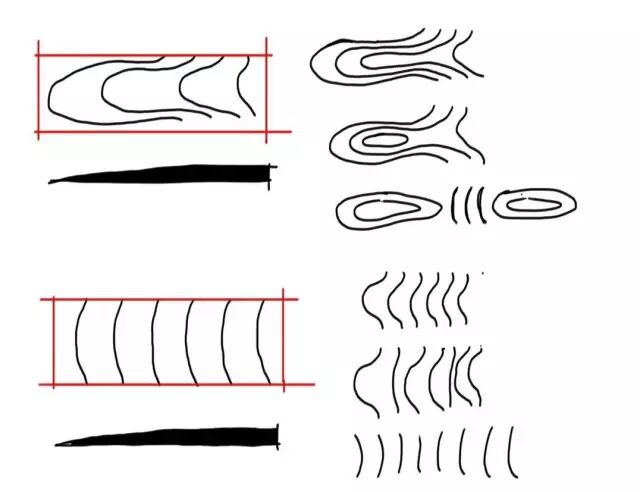 正确的地形画法,土坡更为饱满圆滑,更具美感;错误的地形画法,会导致中间突出,视觉效果差。不同的画法所展示的效果都将是不同的视觉效果