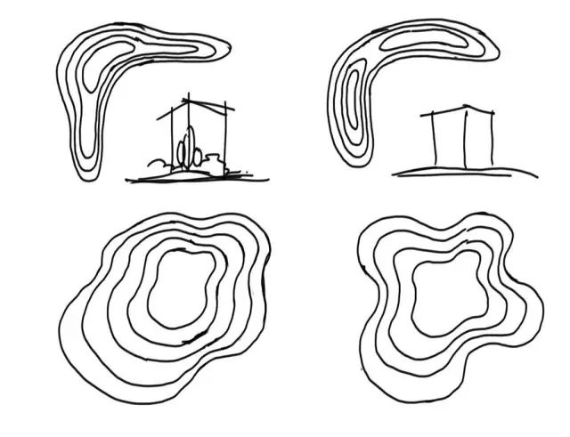 2.轮廓线感知:当地形作为围合空间要素时,人对其的感知是呈线型的,主要通过轮廓线来传递。