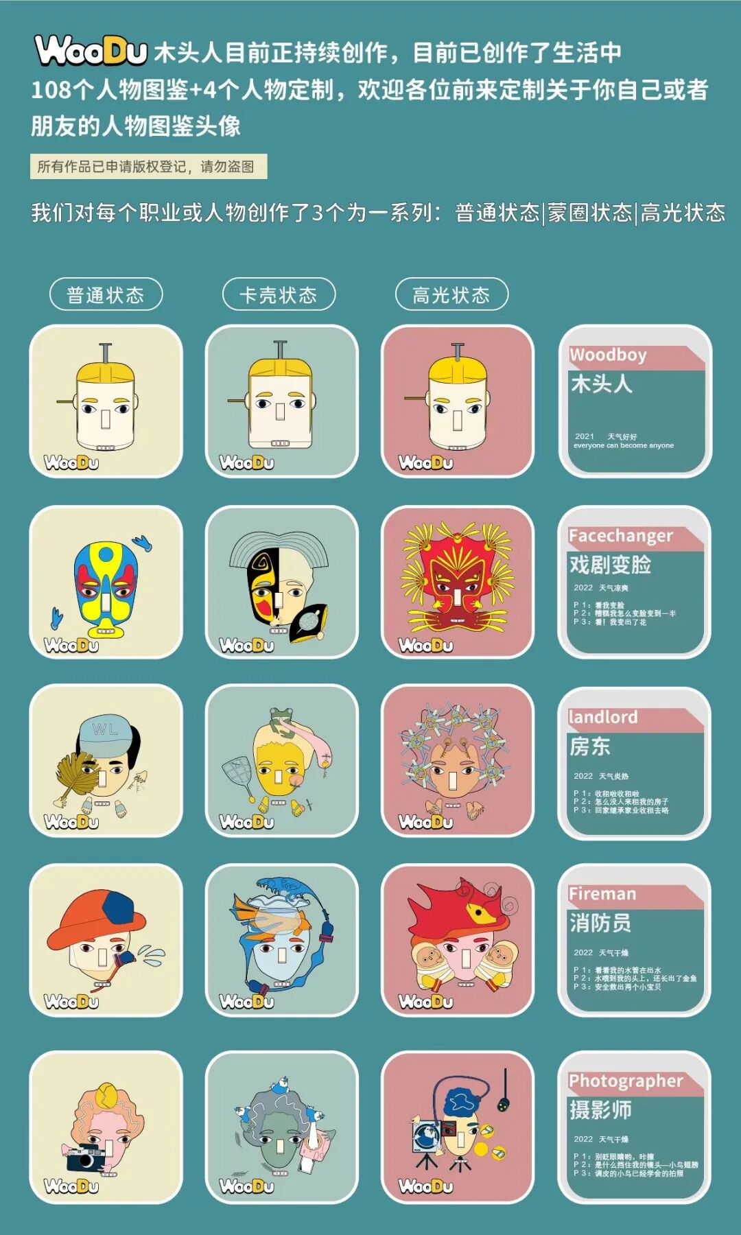 我认为这是一个很好的理念和机会去运用到web3里,于是我们开始画了108个职业的人物,我们做了动画,开通了各种平台ins、推特、小红书、微博、即刻等平台去推广我们的品牌里每个小人物故事。希望后面有了一段的知名度后去海外的平台发行nft。我们项目的白皮书可以看这里:WooDu木头人的世界是什么样的。