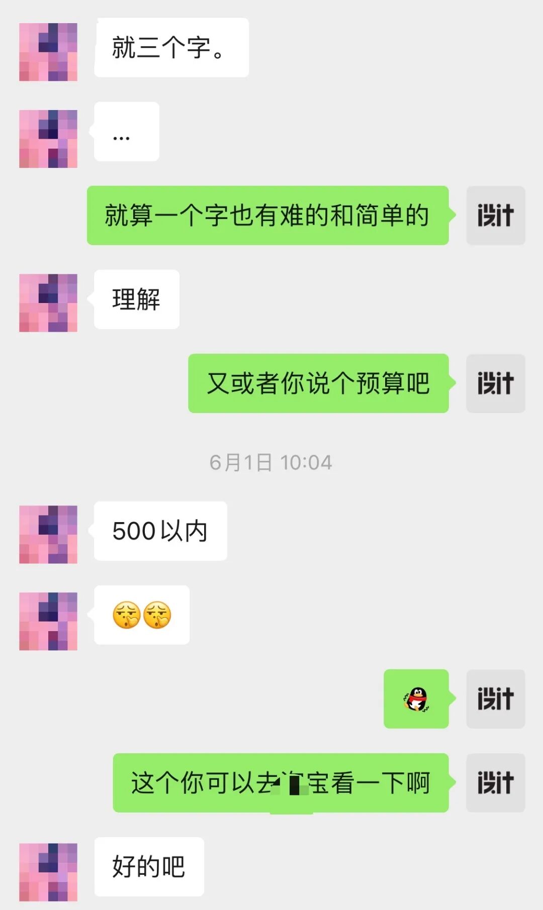 可能看到这些对话,有人会说客户太小气预算怎么那么低之类的,其实预算多少这个没有对错的,因为不是每个客户都可以像大公司那样有几万几十万那种设计预算。
