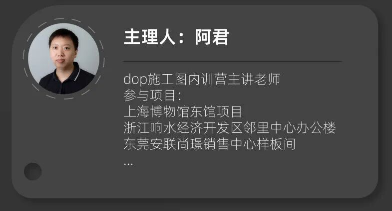 随后,会以各类一线室内设计公司方案和深化协作的工作流程,结合dop制图标准,和必要的建筑学基础知识,帮你构建一套能深入把控项目的深化知识框架,夯实专业基础。