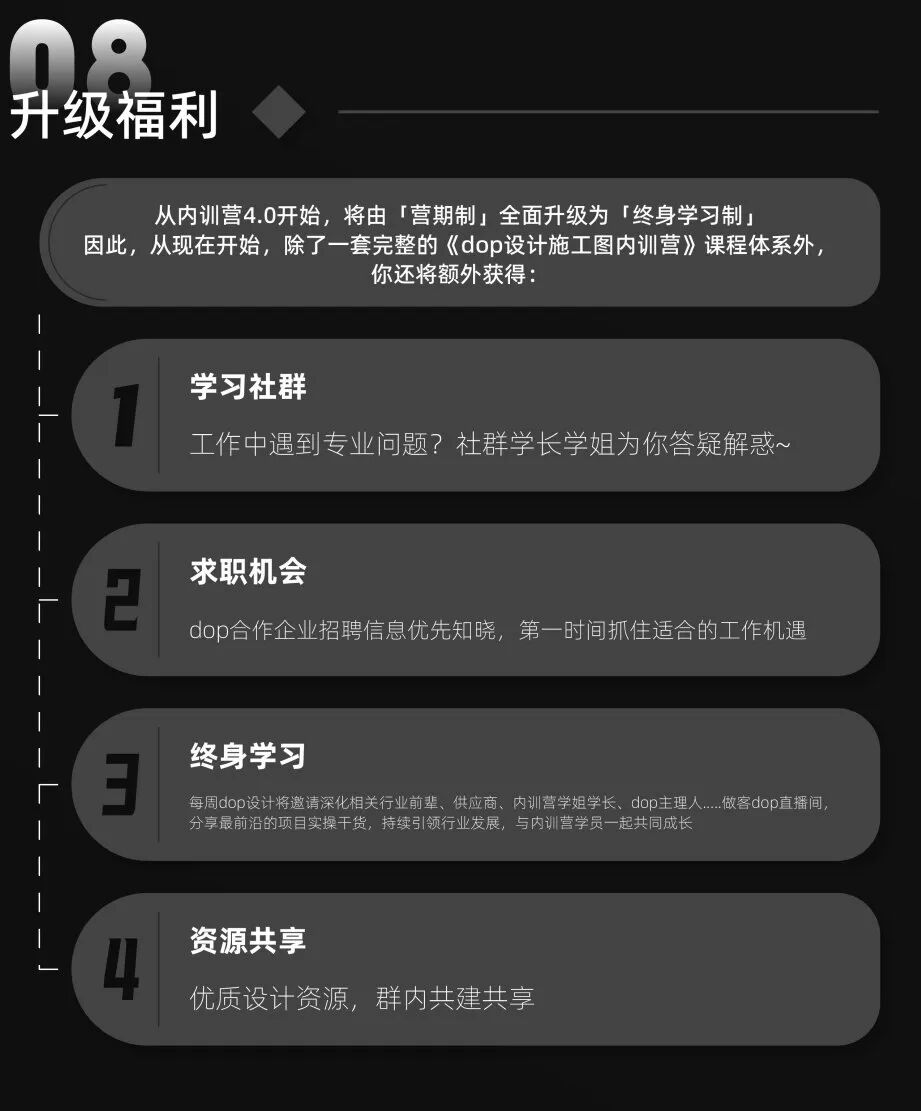 也就是说,这一次,除了课程体系升级外,我们不仅单是做室内设计教育培训,还要搭建dop的深化设计成长社群。