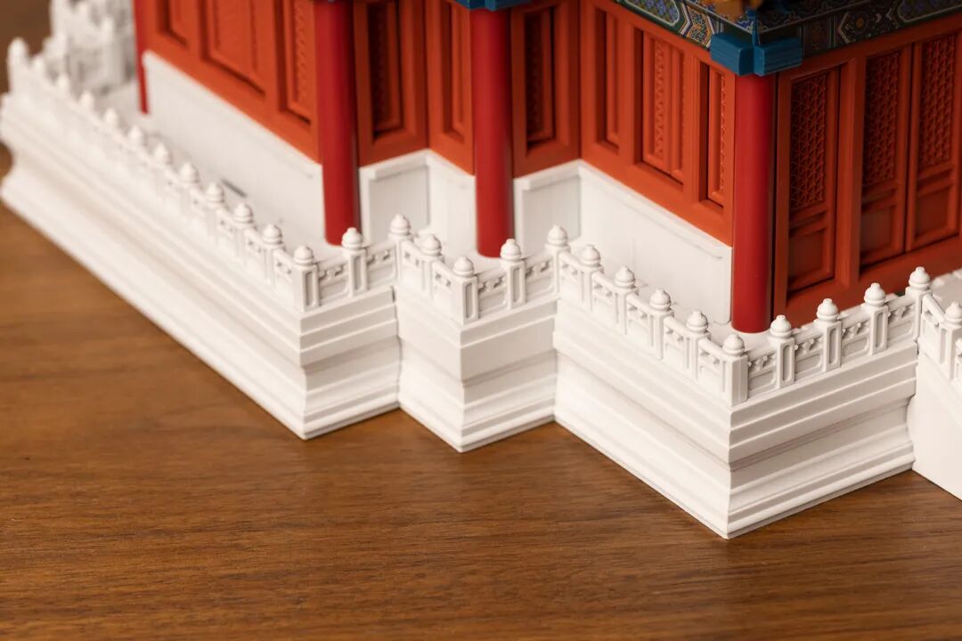 飞檐上使用的是比普通原料注塑成本贵24倍的静电烤漆、喷砂、镭雕工艺,细节还原更真实。
