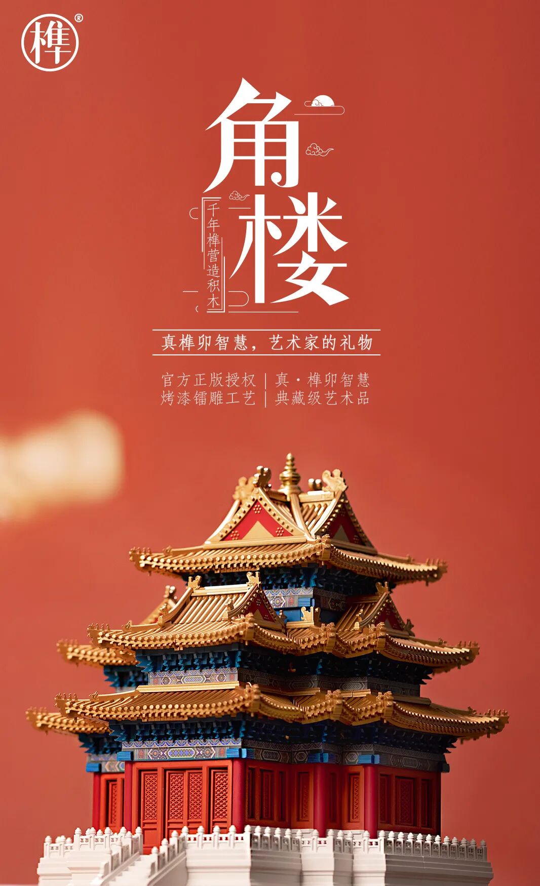 所以为了让大家能够近距离欣赏它的美,这次「上新了故宫」正版授权千年榫选择了以它为原型,由“微缩营造技艺”的创立者王震华设计,推出了故宫角楼真榫卯积木~