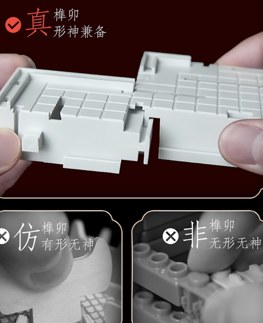 市场上一些号称「榫卯」的积木,打着榫卯的旗号,但是做出来的东西却不是真的榫卯。