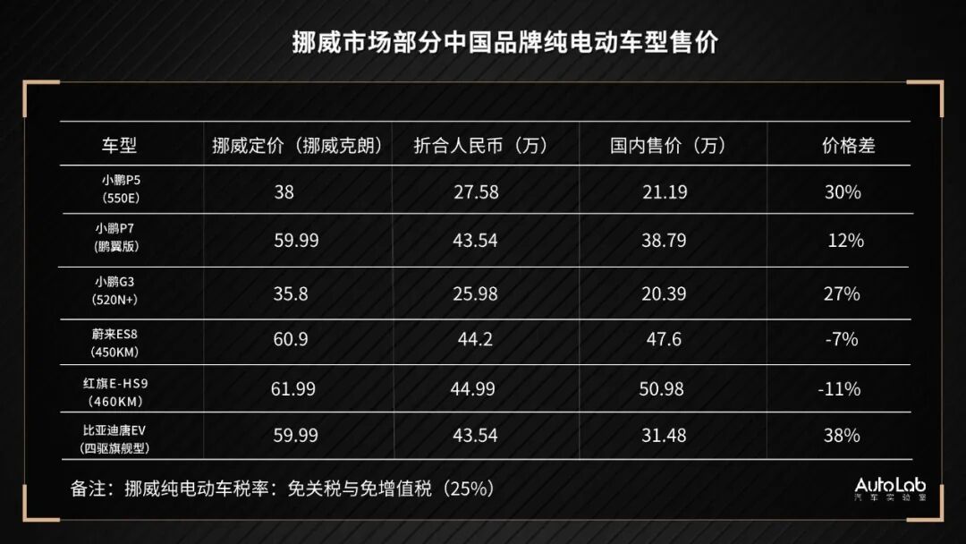 在挪威,为了鼓励大家购买纯电动车,所以政府对于进口纯电动车型不仅免除了关税,也不需要增值税(25%)。而相较于国内需要征收13%的增值税来说,就算加上更高的物流费之后,一台车的成本上可能依然会低于中国市场。