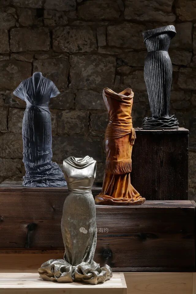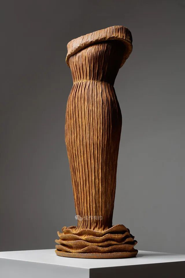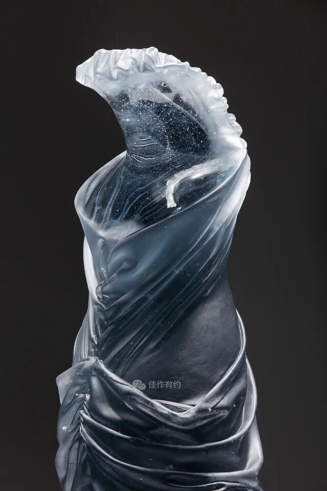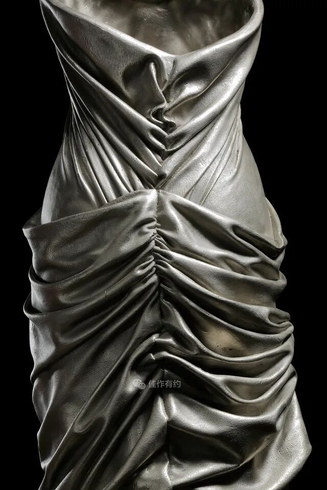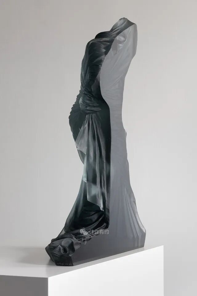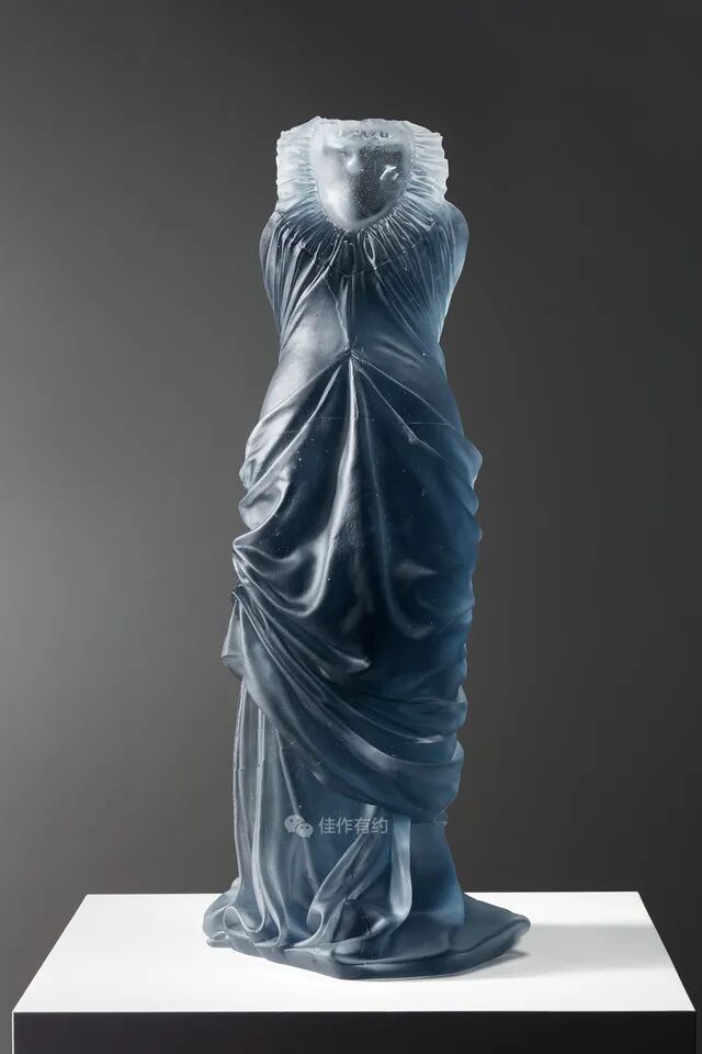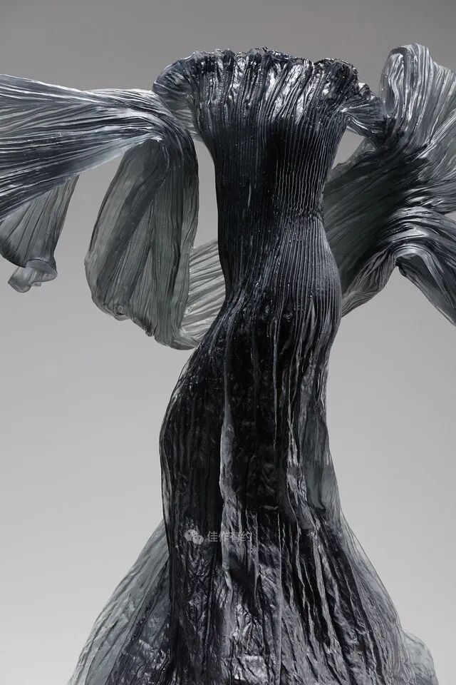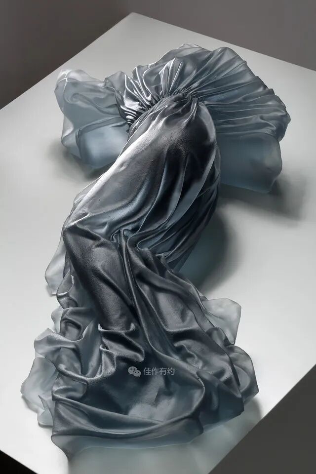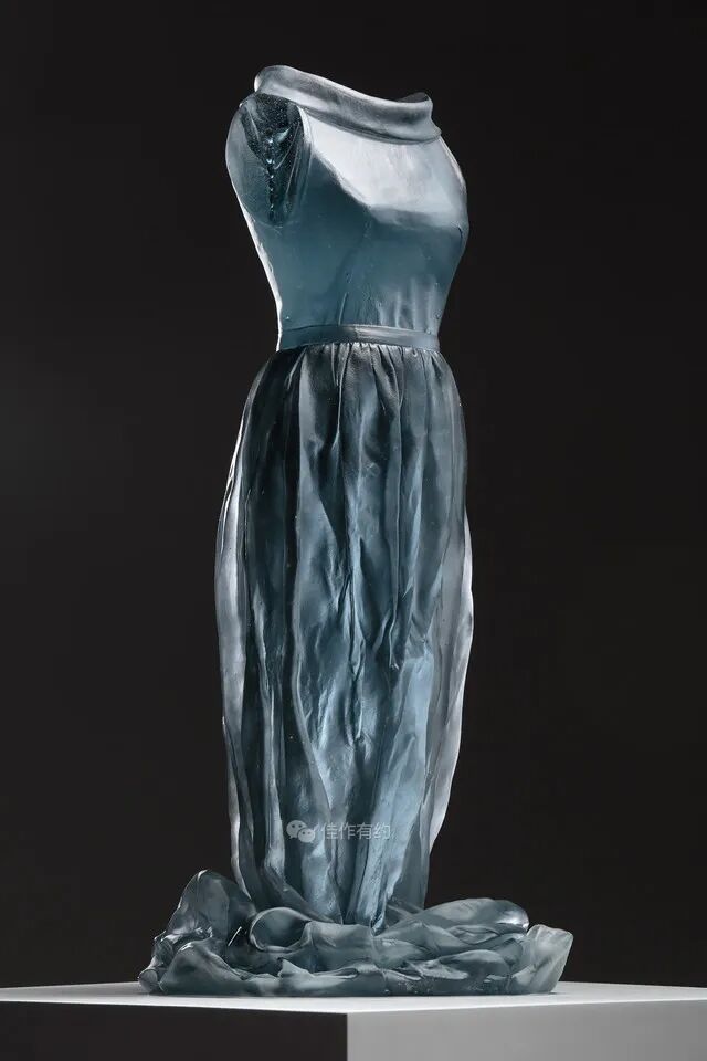 Karen LaMonte 运用丰富细腻的艺术手段将玻璃、陶瓷、青铜、铁、纸和大理石等材料创作了崇高而神秘的作品。她的作品范围从玻璃到巨大的石雕,通过打造服装来表达对女性身份意义的理解,并探索美、性别、身份和自然世界的主题,从而引起人们对女性身份的关注。作品在被光线照射后产生半透、磨砂、褪晕等高级质感,层叠出丰富的色彩和空间感。