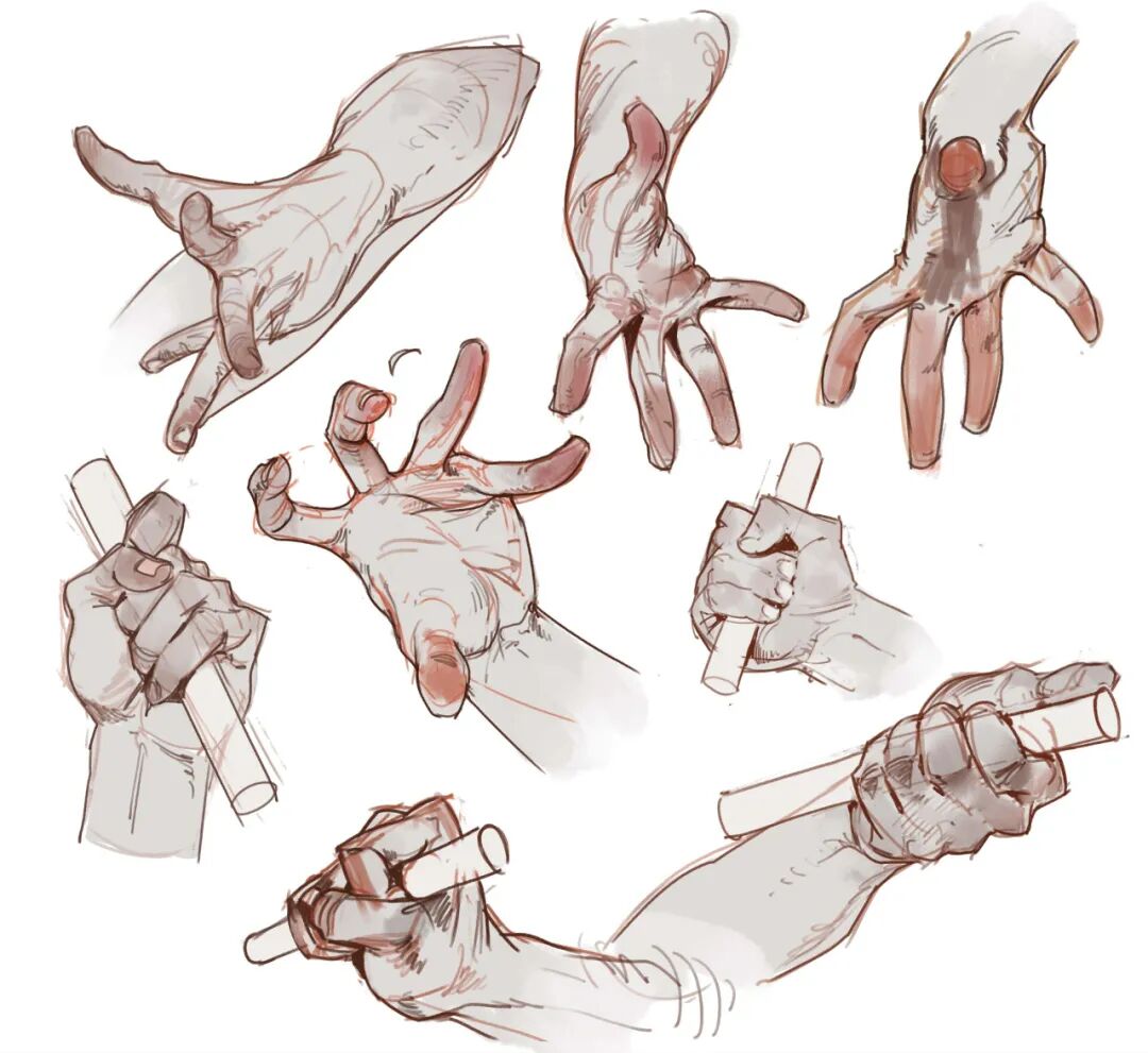 事实上,Ognjen在社交软件上有很多自己画手部的作品,寥寥数笔就把手在不同状态中的动感透过图片传递给观看者。